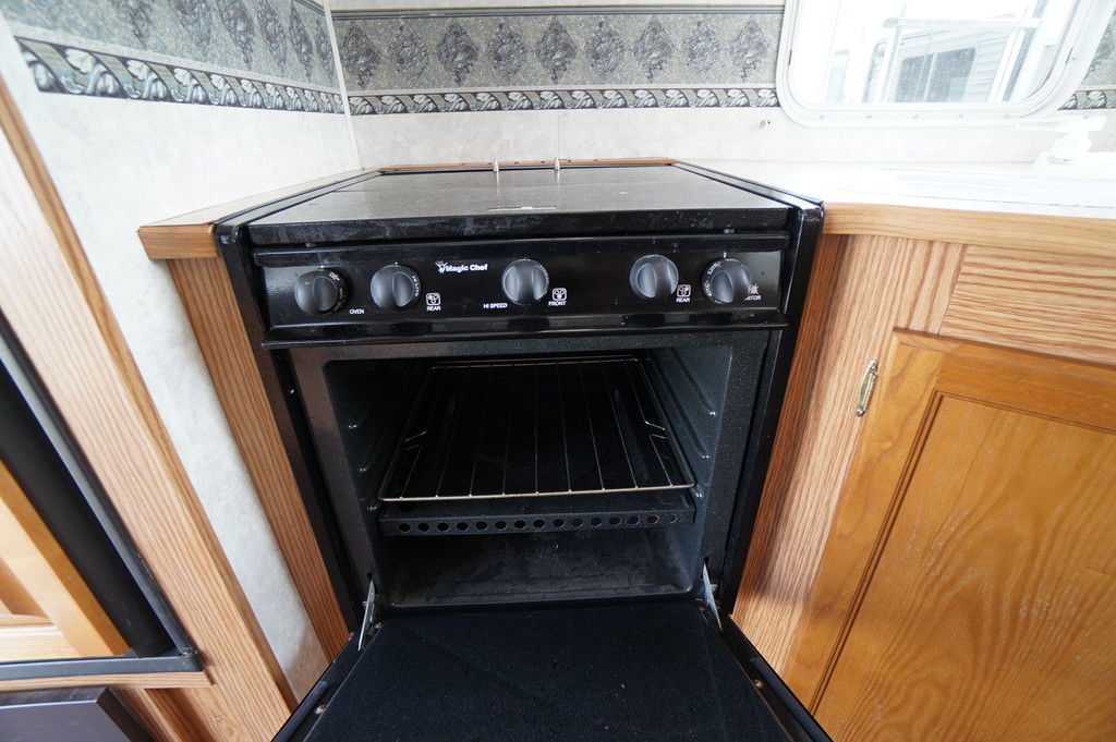 2004 Keystone Cougar 245. A true half ton towable 5th wheel, with an over all length of 26 feet and a dry weight of only 6400 lbs! The rear entry, Rear kitchen layout makes it feel like a trailer that is much larger! Windows on both sides. Solid trailer, solid floors, no current water leaks, however does have some minor damage and delamination from former water leaks. Couch and dinette table facing each other, both convert to beds. All appliances working. Come check it out at Longhaul in Listowel! Video at: https://www.youtube.com/watch?v=PYH_ktP-EdU