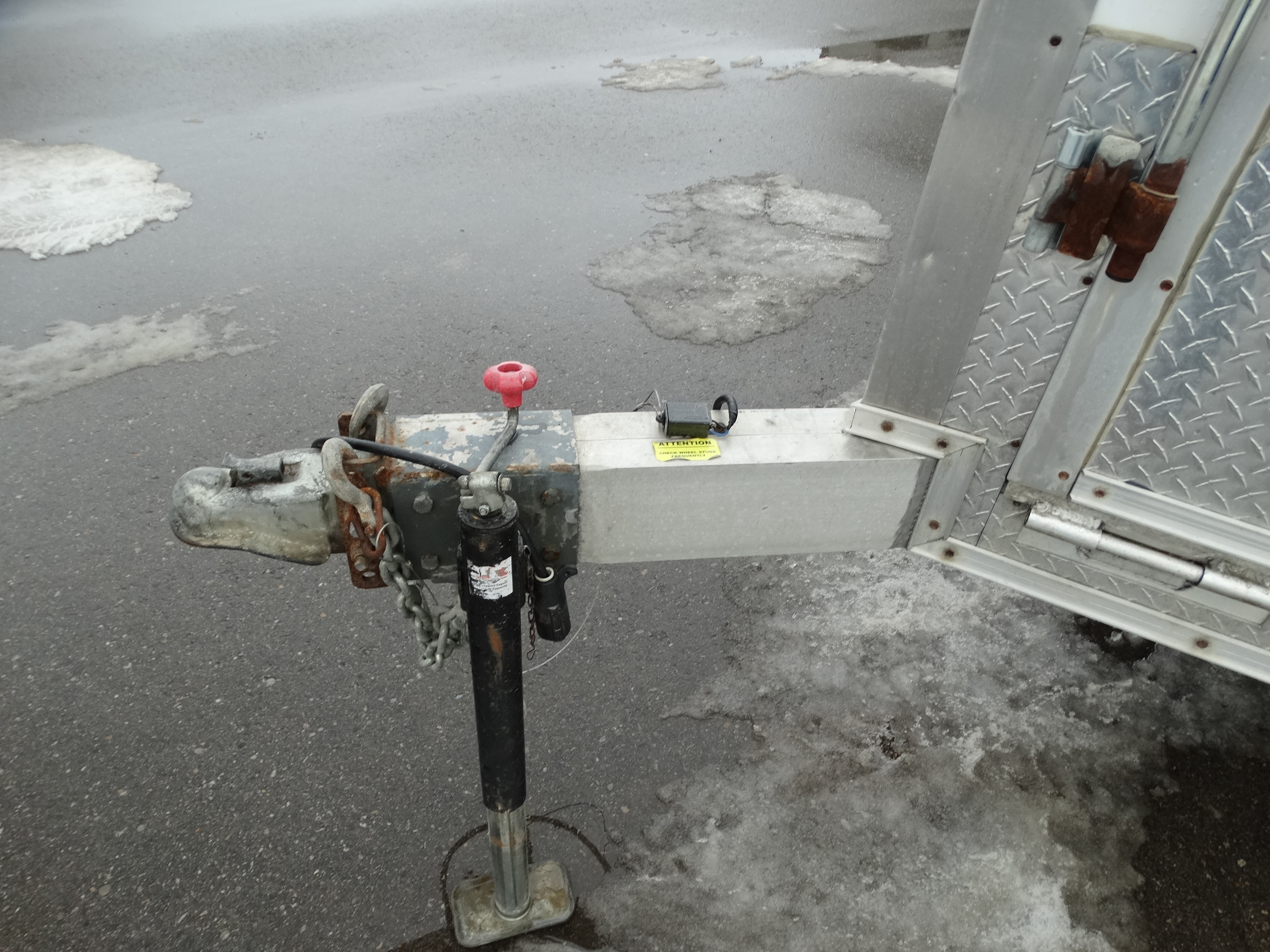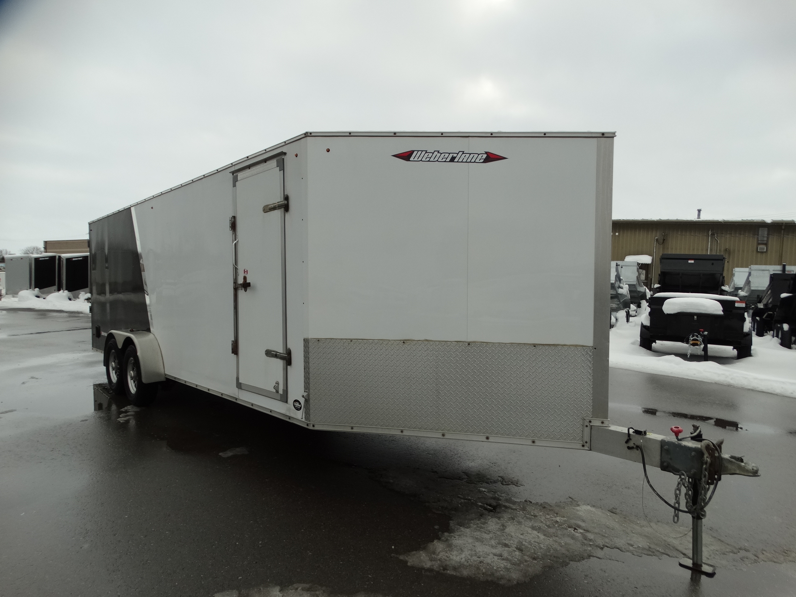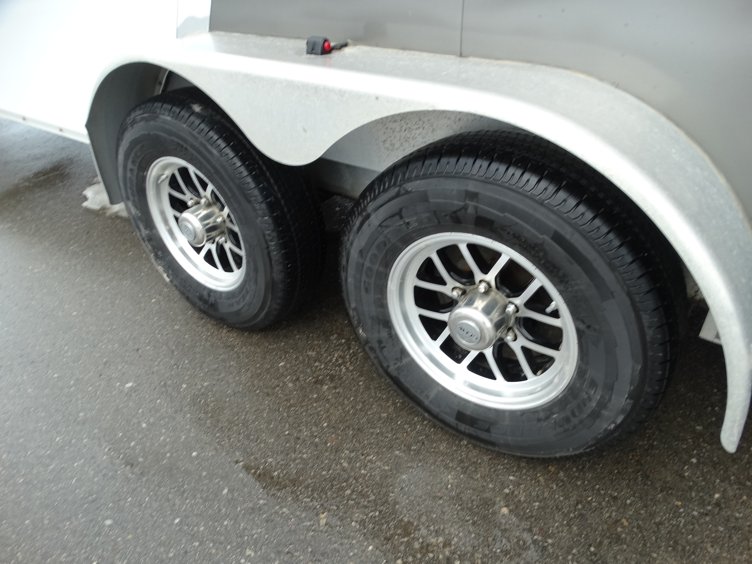 Come check out this used 7x27 aluminium sled trailer! This trailer has tandem 5200 lb axles with electric brakes and a payload of over 7000 lbs. It comes with aluminium rims, white plastic interior lining, a rear ramp door as well as a front ramp door, 72'' interior height and d-rings. This trailer also comes with a man door on each side, rear loading light, mounted spare tire, front jack and safety chains. Come take a look!