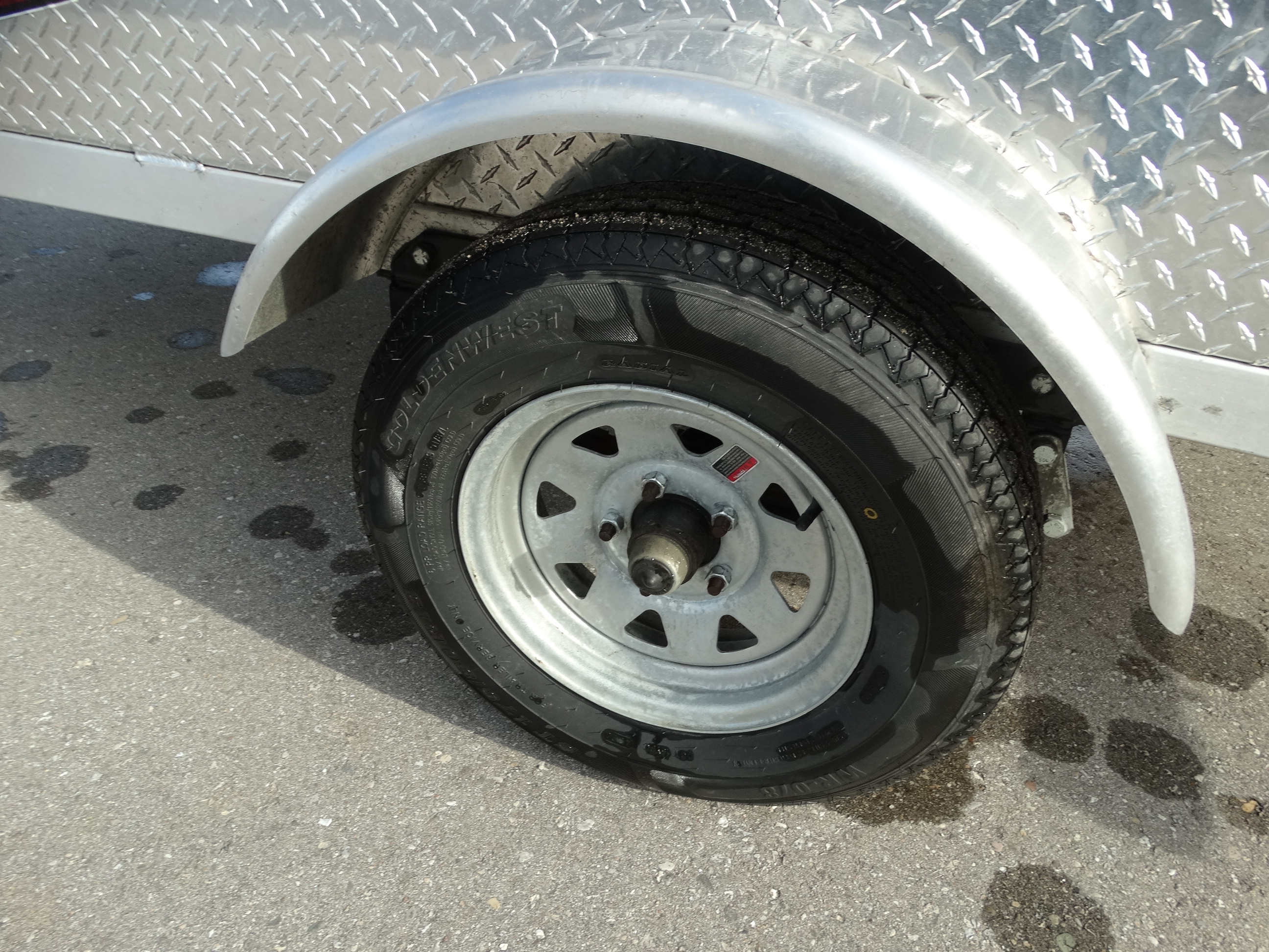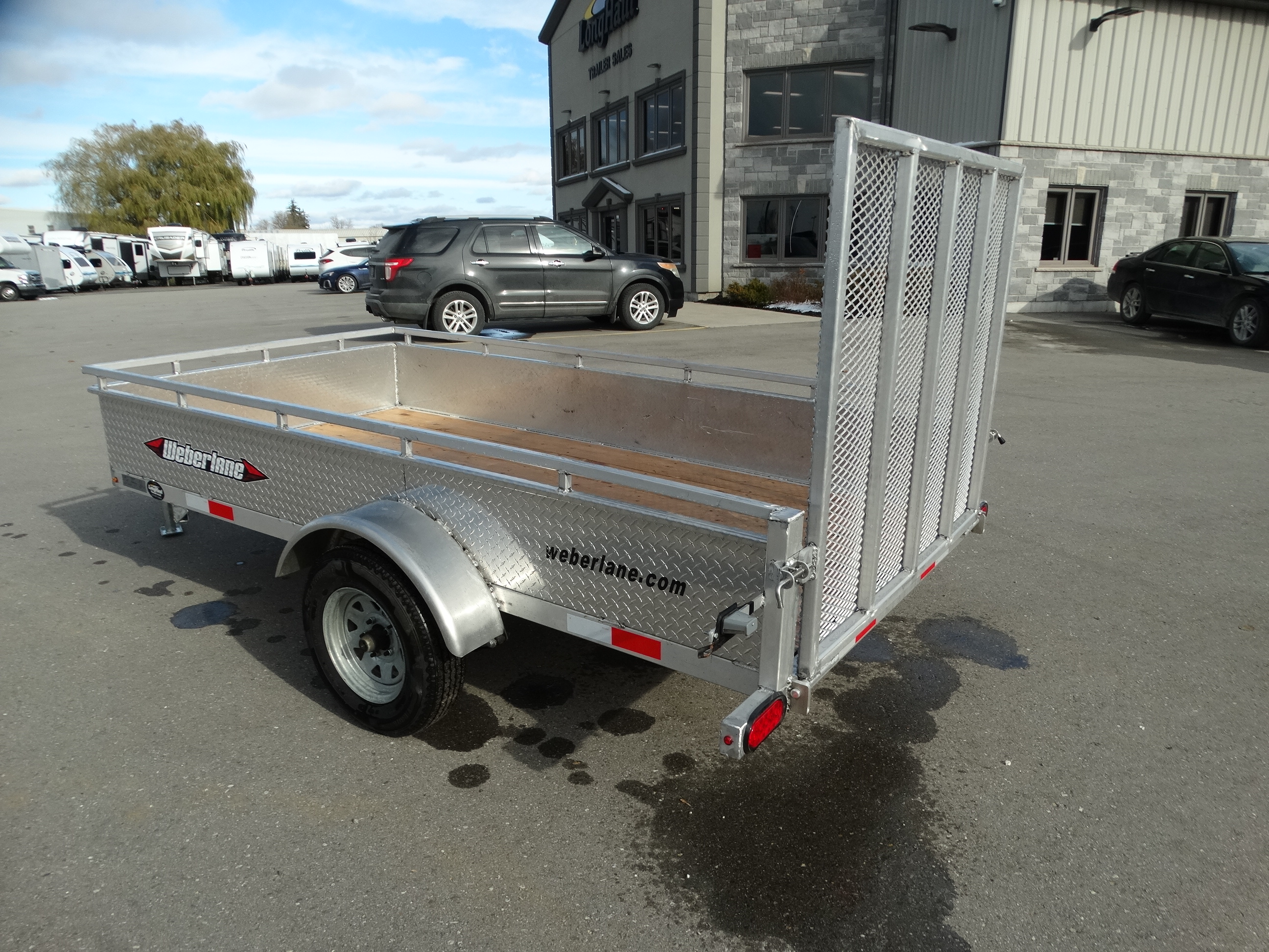 Come check out this slightly used 5x10 aluminium utility trailer. This trailer has a single 3500 lb axle with a payload of around 2000 lbs. It has galvanized rims, LED lights, rear mesh ramp gate, front jack and safety chains. Still in great shape! Come take a look today!