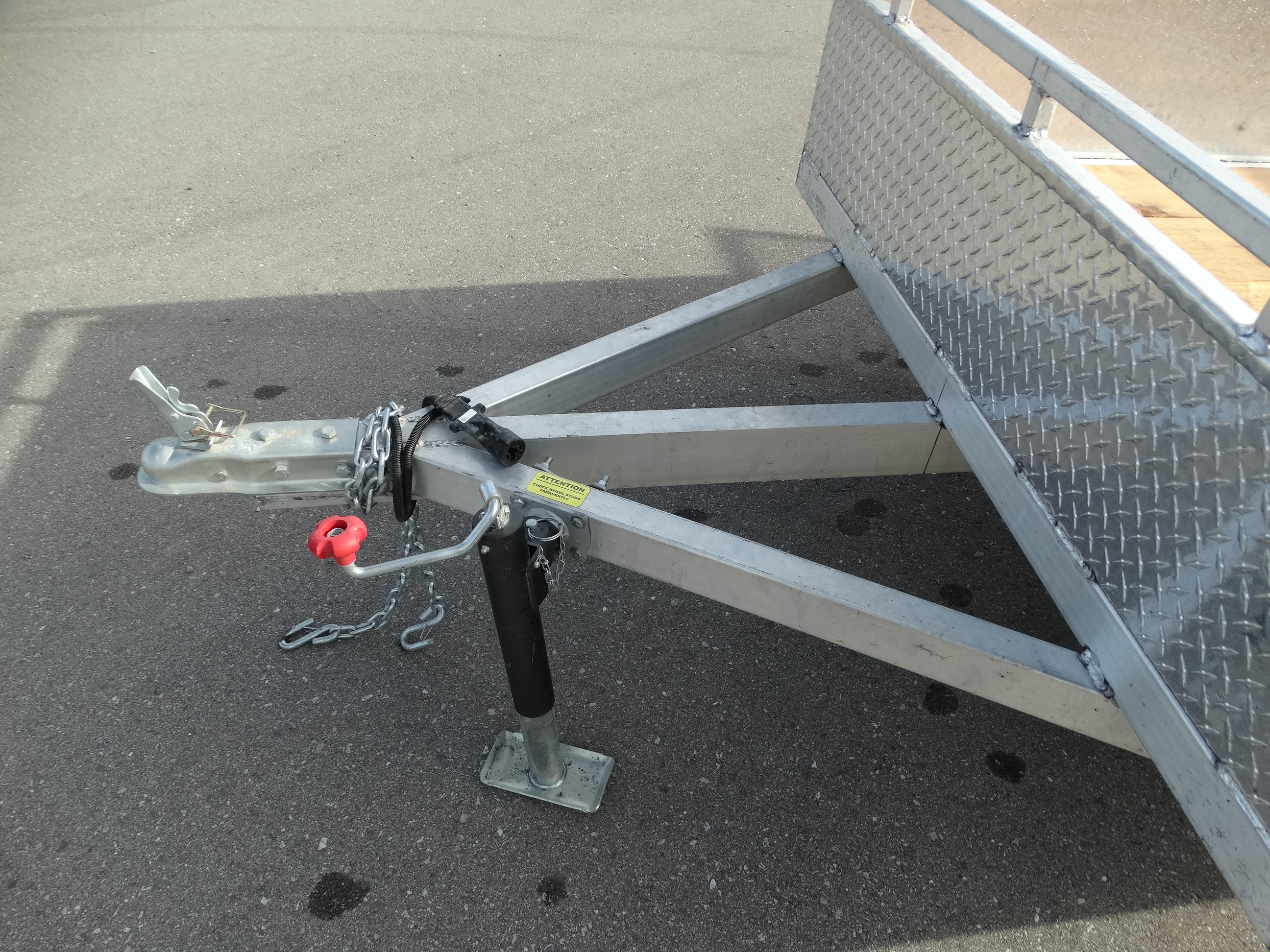 Come check out this slightly used 5x10 aluminium utility trailer. This trailer has a single 3500 lb axle with a payload of around 2000 lbs. It has galvanized rims, LED lights, rear mesh ramp gate, front jack and safety chains. Still in great shape! Come take a look today!