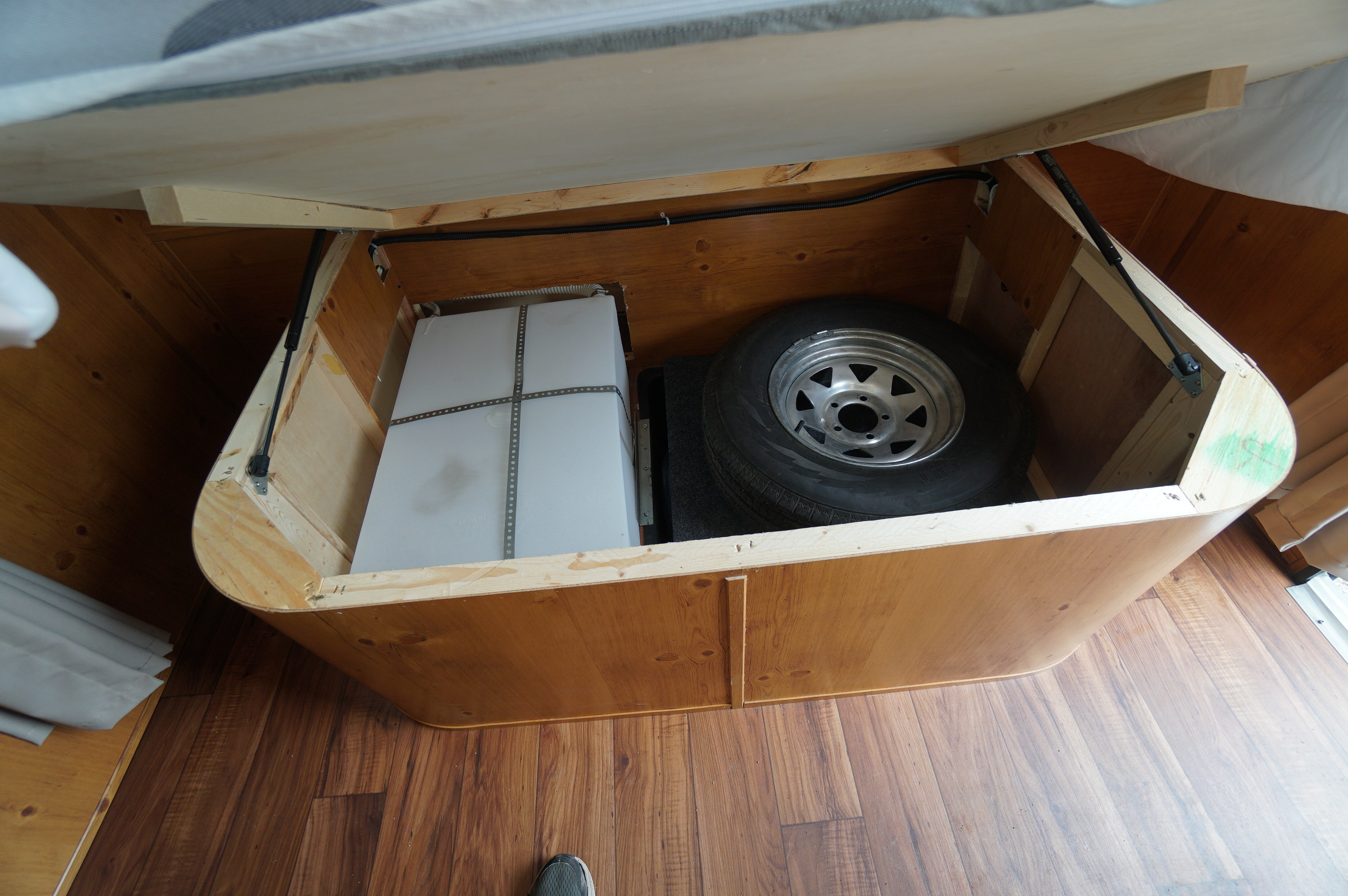 - In-Floor Storage Pan Under Bed with Spare Tire