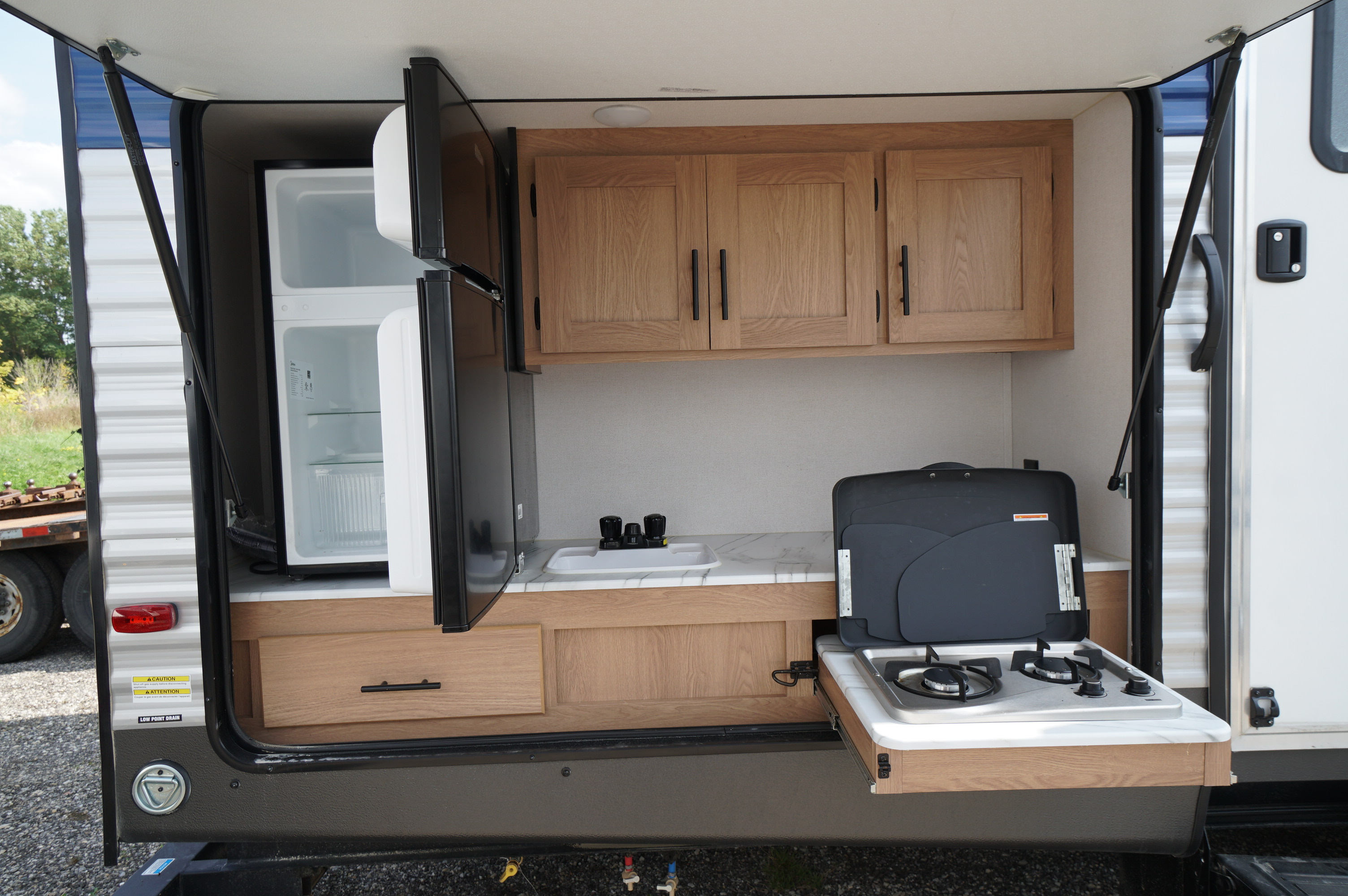 If you are an introvert, and despise hosting your children, neighbors, friends and relatives, this trailer just might not be the one for you! However, if you're looking for space, and more is merrier for you, you've hit the sweet spot in this gently used home away from home! With a whopping 32 foot floorplan, this great condition used Avenger 32BHS not only sleeps up to 9, there's room to move when you have the 9! There is a great lounging play area in the rear bunkroom with floor sleep and play cushions with cup holders. A private queen walk around bedroom 32 feet away from that ruckus! A large outdoor kitchen with tall bar fridge, 2 burner cook top, sink, and overhead cabinets. Double entry, with rear entry directly into the washroom. Handy for on road bathroom breaks, or popping in to wash childrens feet. Living room with large U shaped dinette and a jack knife sofa bed with cup holders. Good clean trailer, with everything guaranteed to be working properly. Weight distribution system with hitch and bars included. Come check it out at Longhaul in Listowel! Great finance plans available. Trade ins accepted.