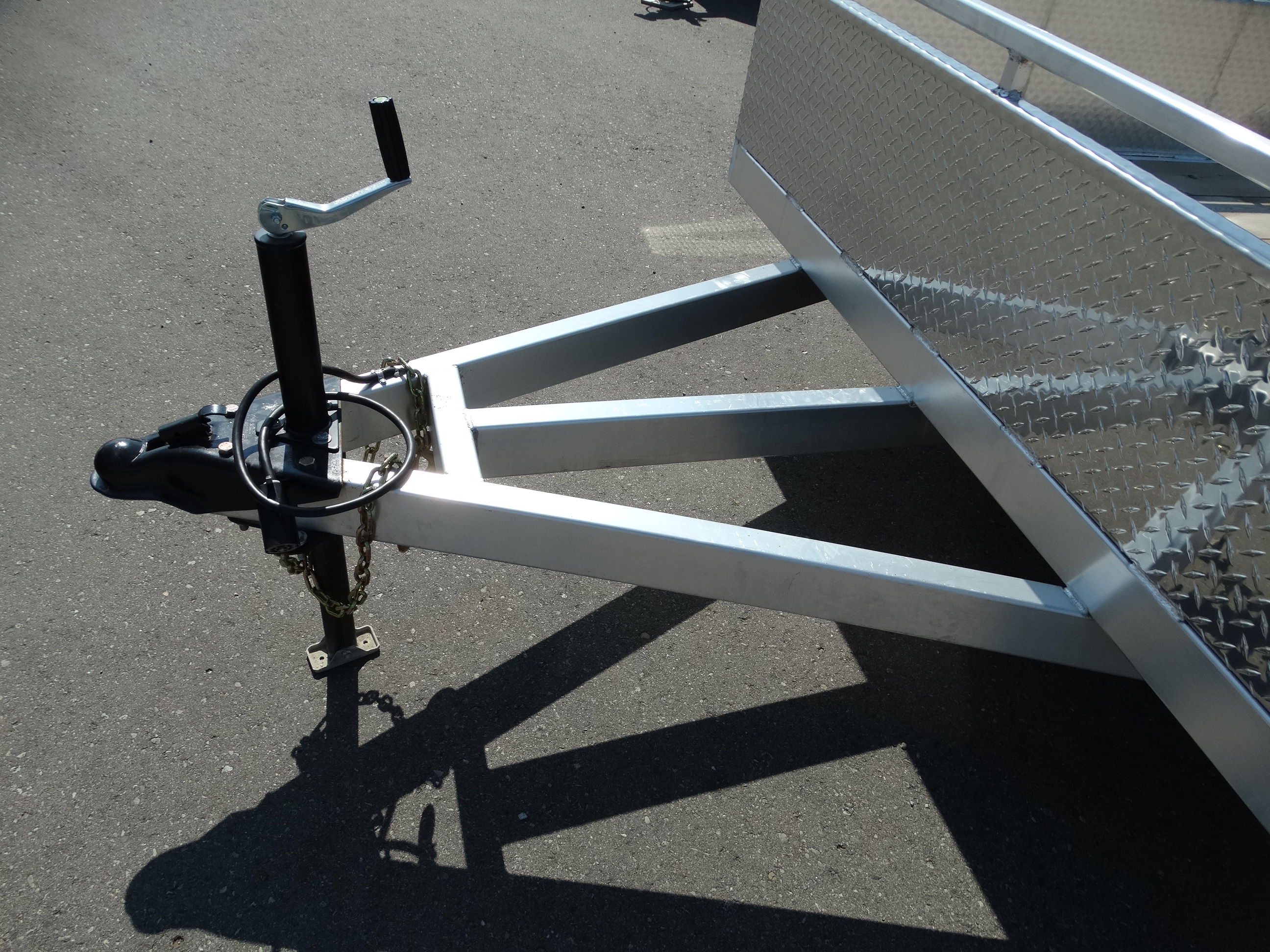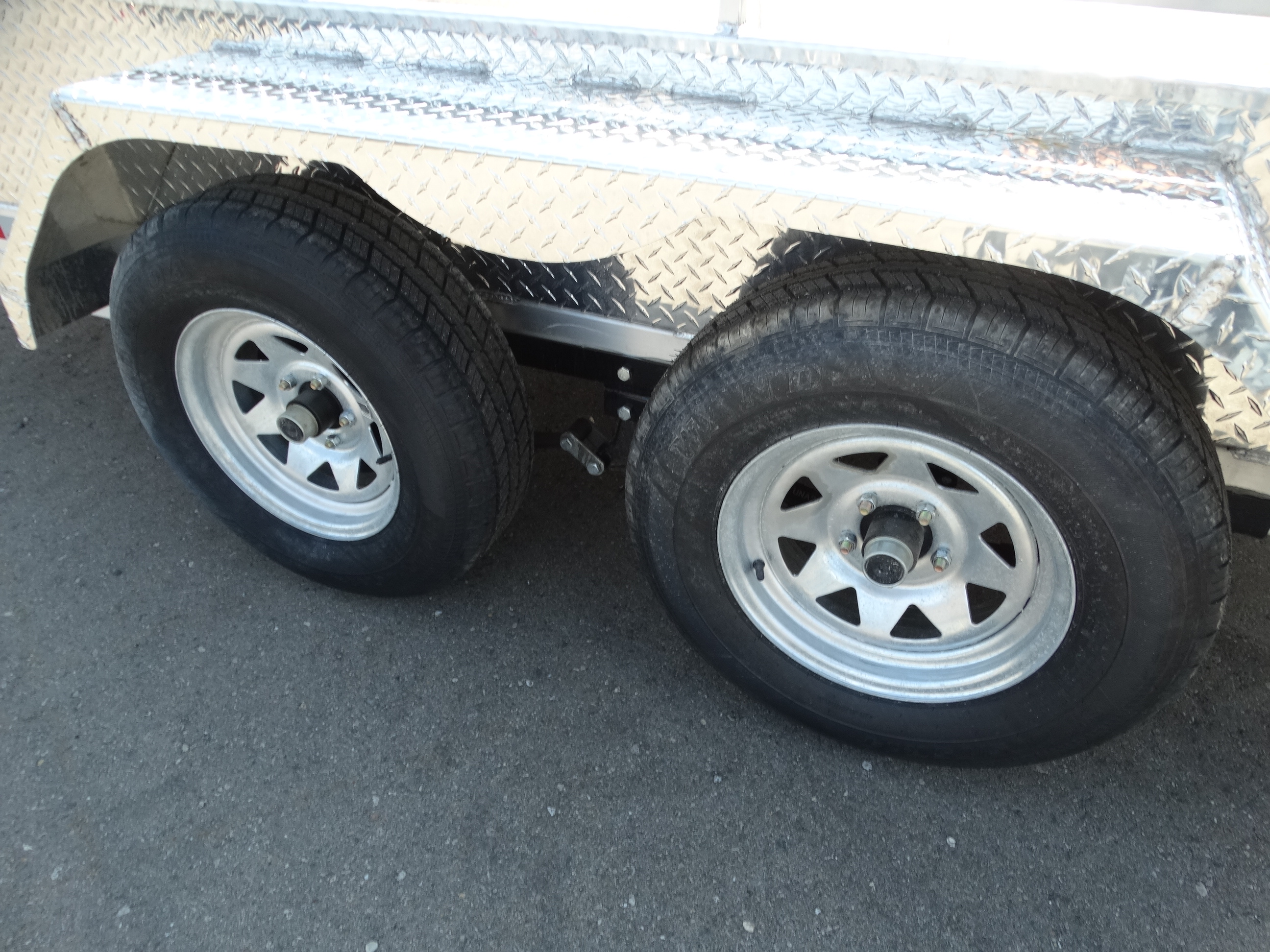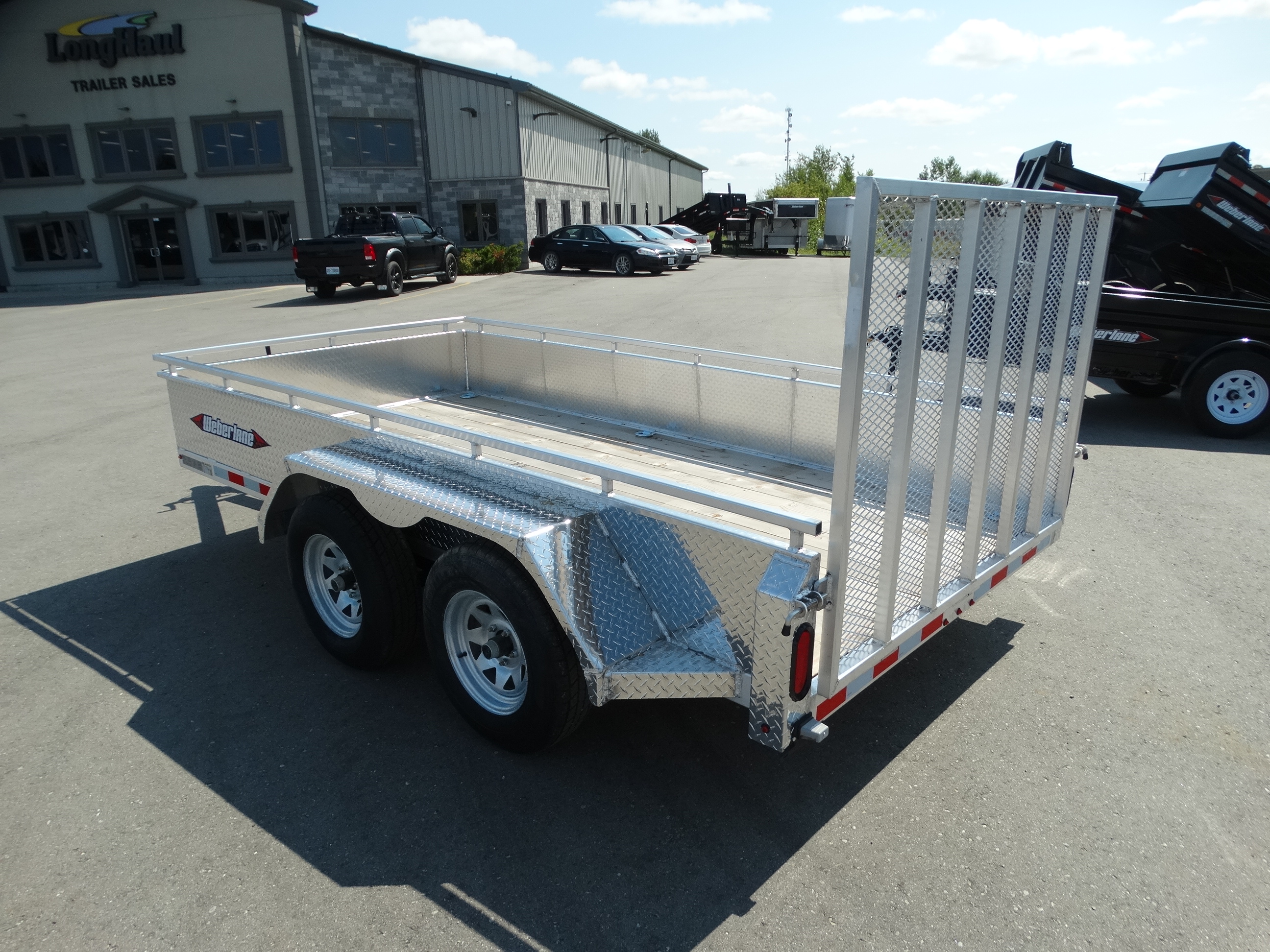 Come take a look at this aluminium 6x12 landscape trailer. This trailer has tandem 3500 lb axles with electric brakes and a payload of over 4900 lbs. It has a rear mesh ramp gate, LED lights, galvanized rims, D-rings, front jack and safety chains. Come check it out today!