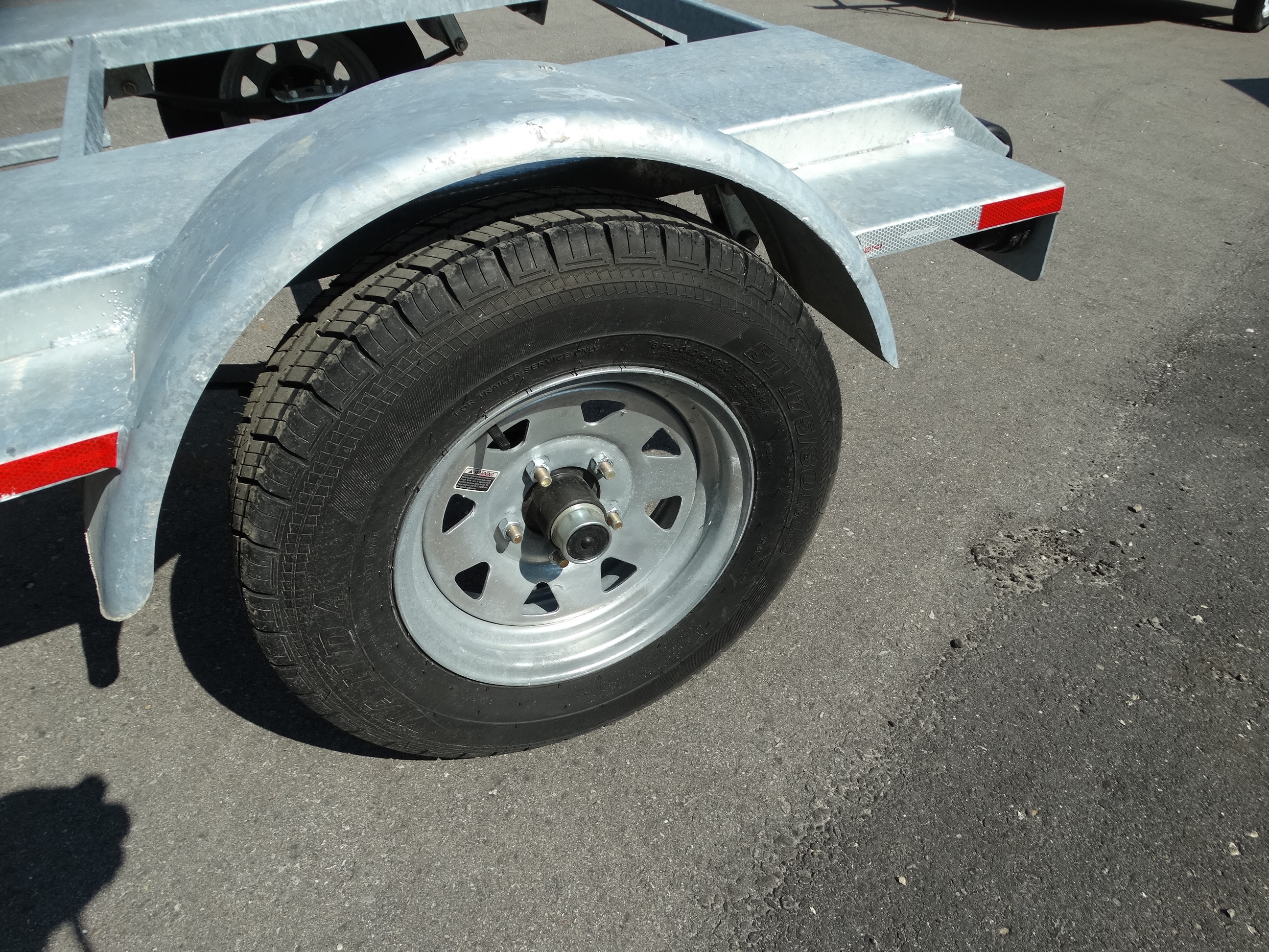 Come check out this unique galvanized trailer. This trailer was originally designed for a small boat, but it can be used for your ATV as well. It is a single 3500 lb axle with galvanized rims. It is 55'' between the fenders, and 81'' long. It has LED lights, and a coupler for a 2'' ball. Come check it out today!