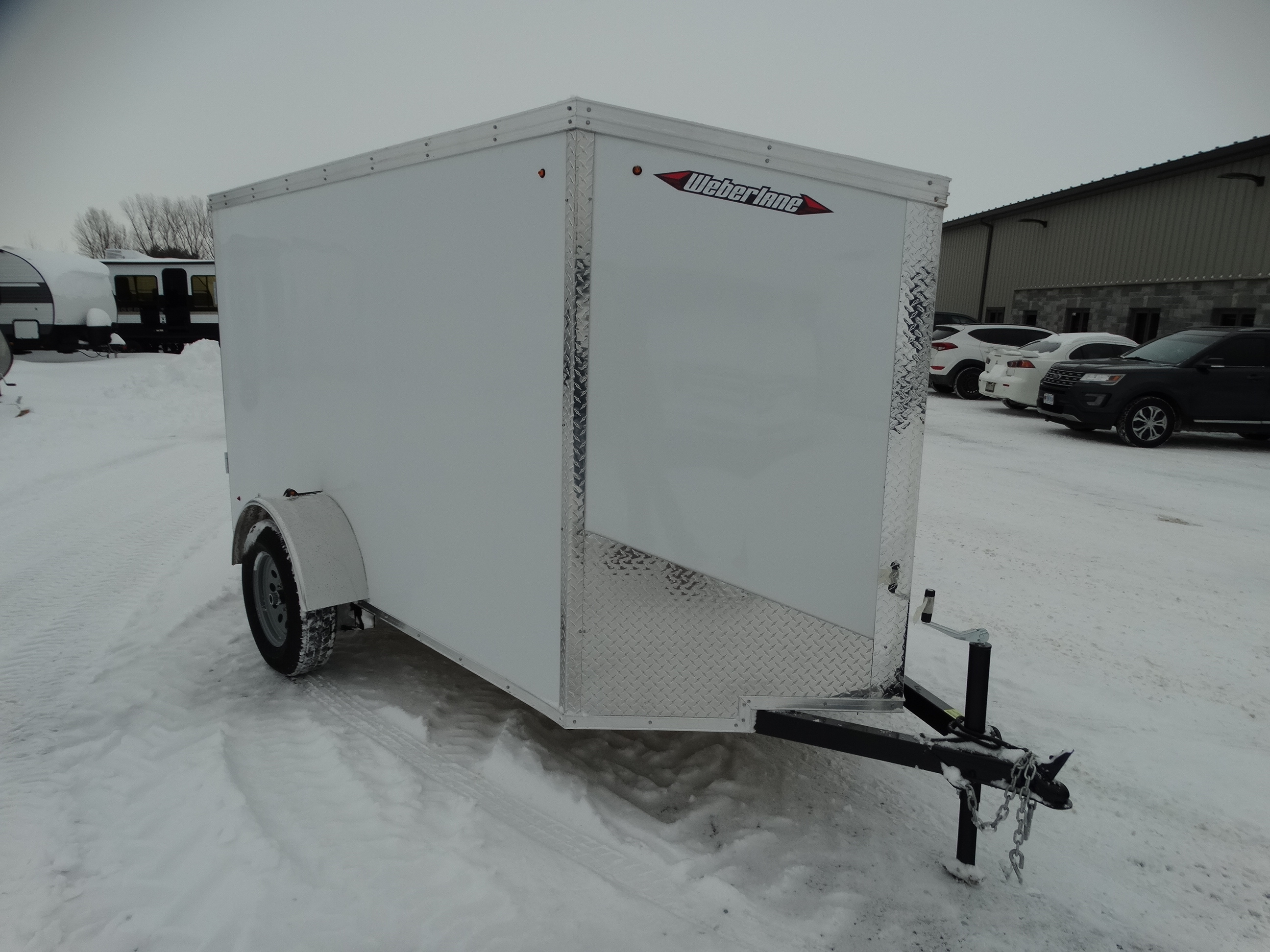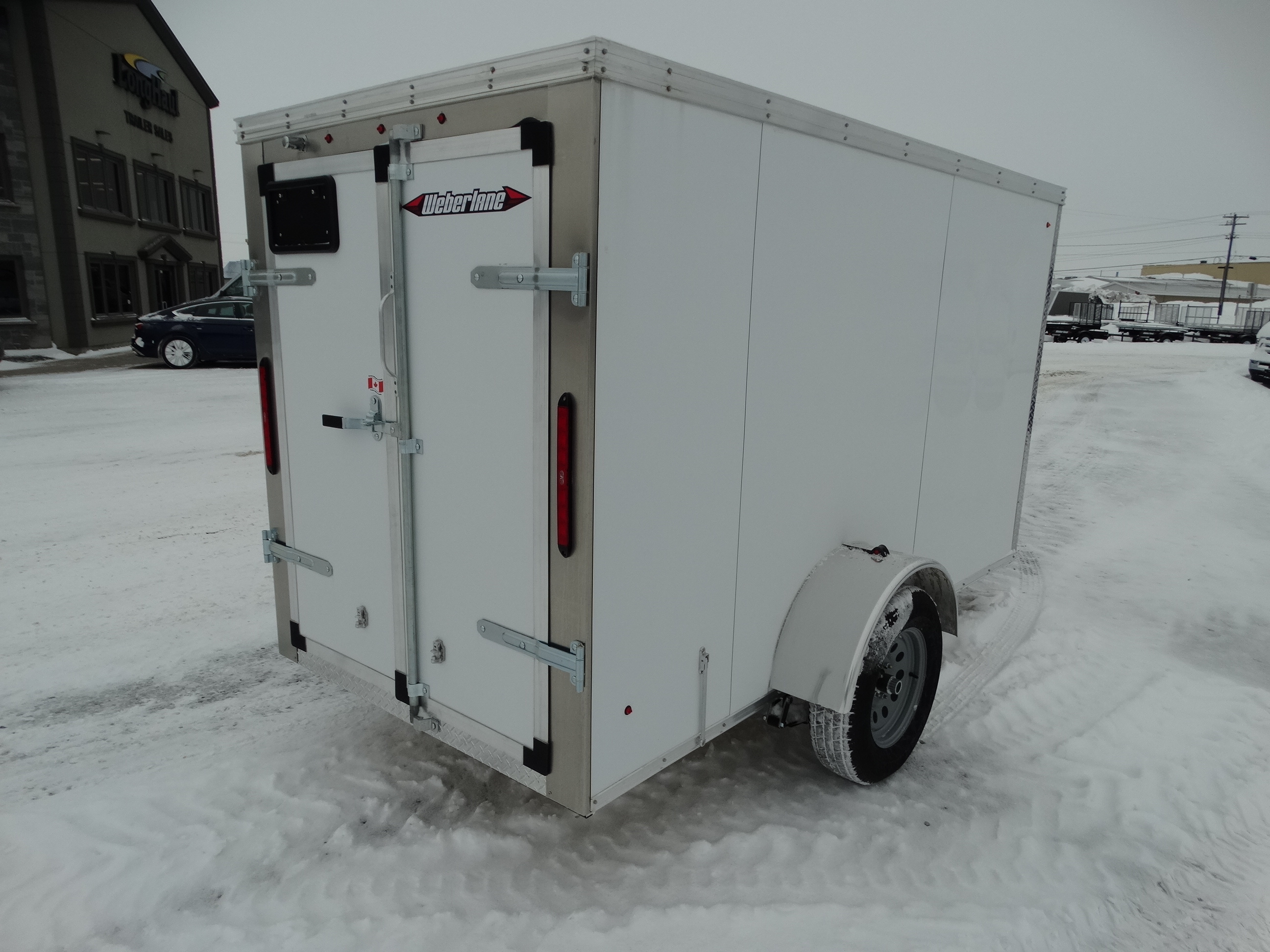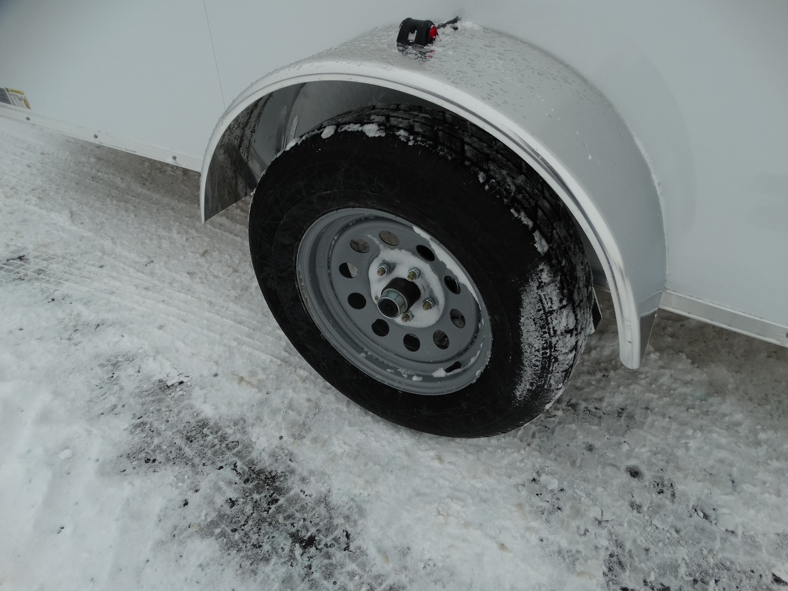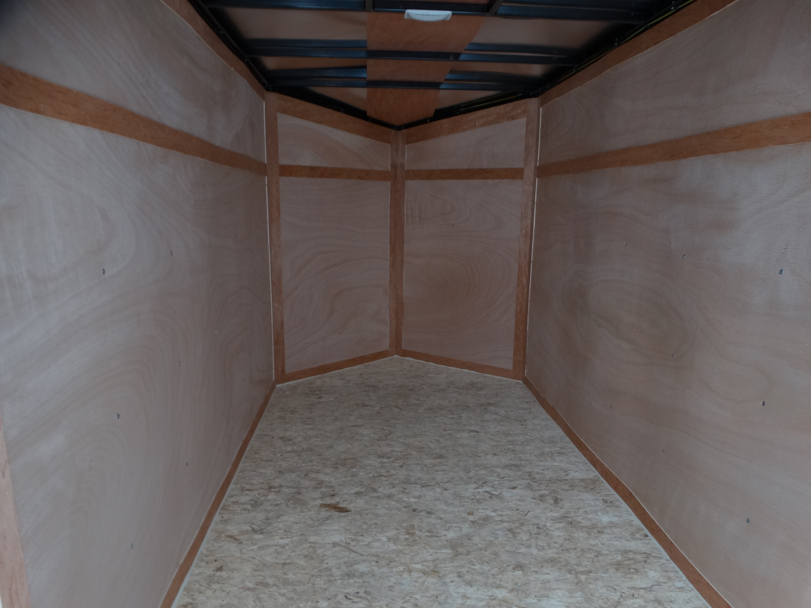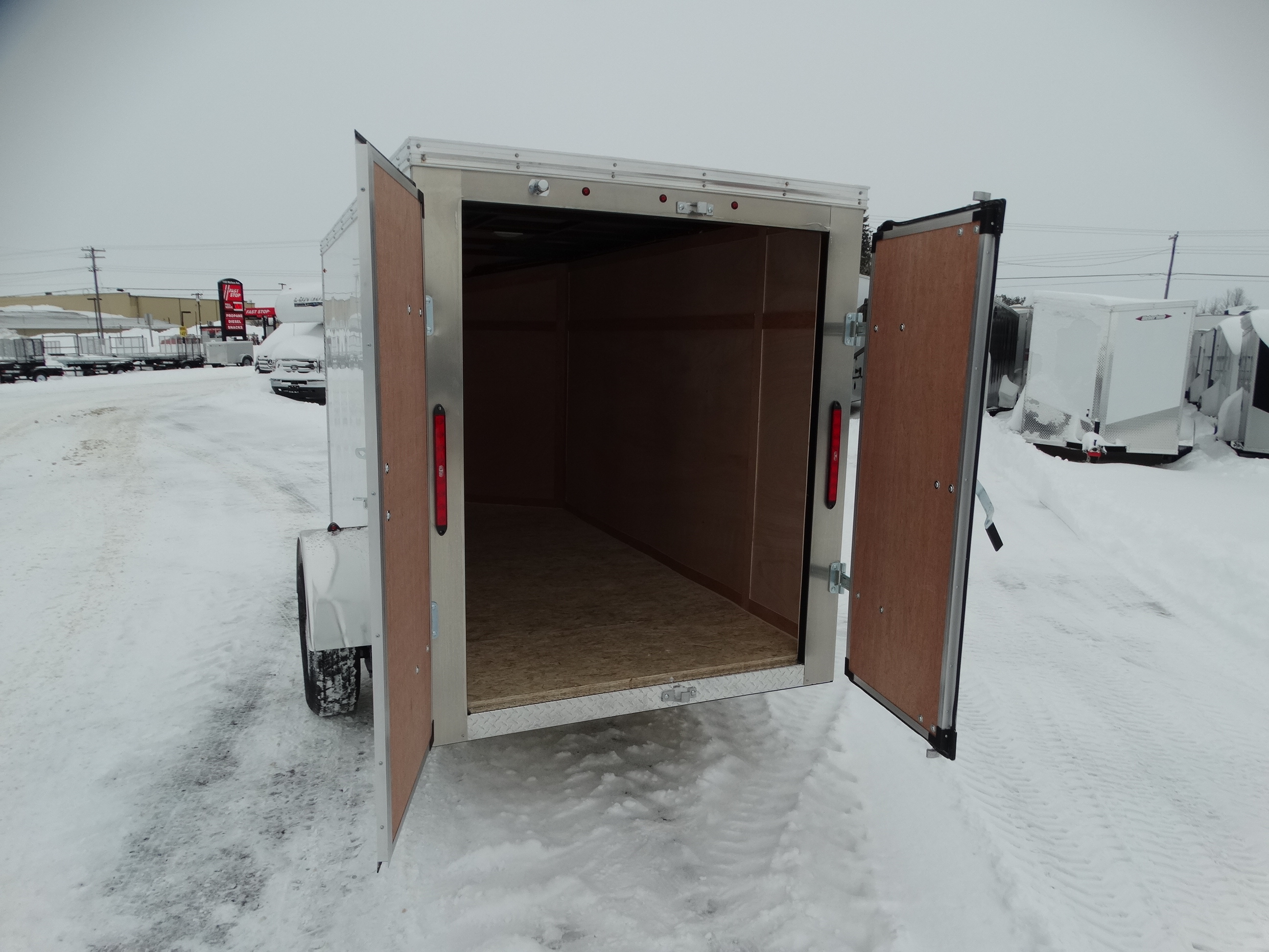Come check out this 5x10 enclosed trailer! These don't stay in stock long! This trailer has a single 3500 lb axle with a payload of around 1800 lbs. It has an interior height of 66'', rear barn doors, an interior light, side vents, as well as a front jack and safety chains. Come take a look today!