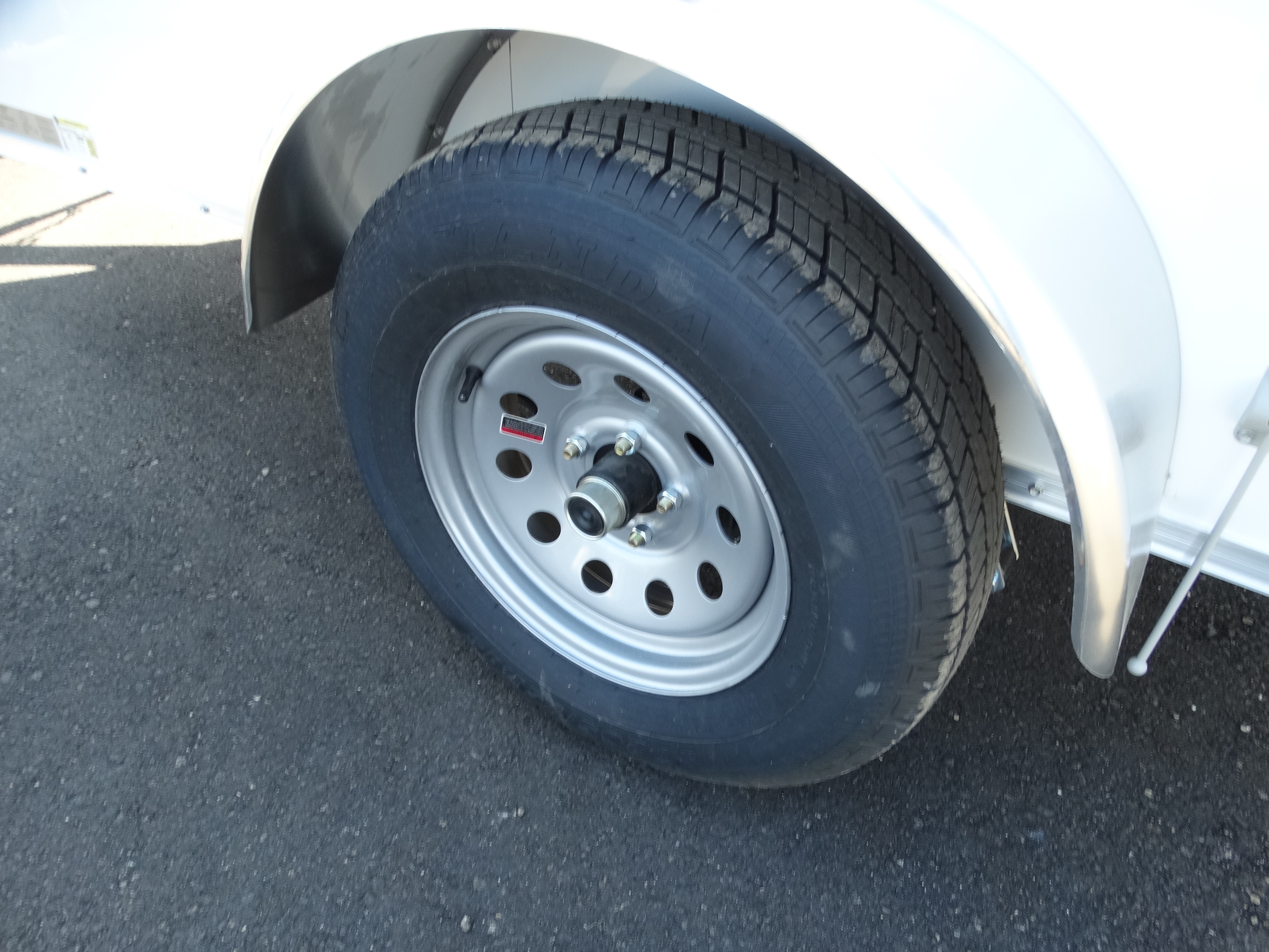 Come check out this 5x8 enclosed trailer! This trailer has a single 3500 lb axle with a payload of around 1900 lbs. It has an interior height of 66'', rear barn doors, an interior light, side vents, as well as a front jack and safety chains. Come take a look today!