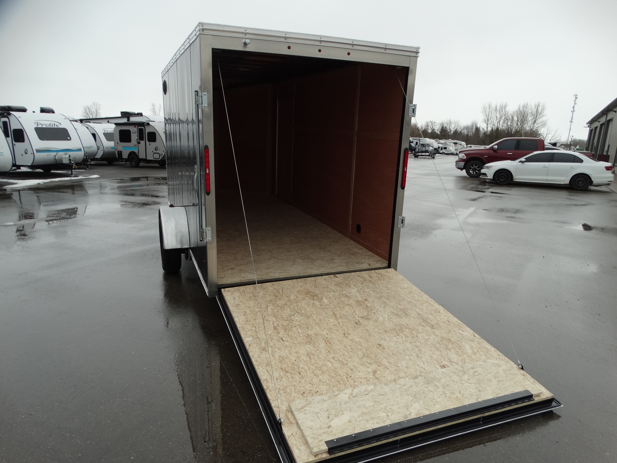 The standard barn door offers a classic, rustic look while providing easy access to your trailer's contents, making it ideal for loading and unloading everyday items. Alternatively, upgrading to our rear ramp door simplifies loading heavier equipment and items on wheels, such as ATVs and motorcycles, with a smooth, sturdy ramp.