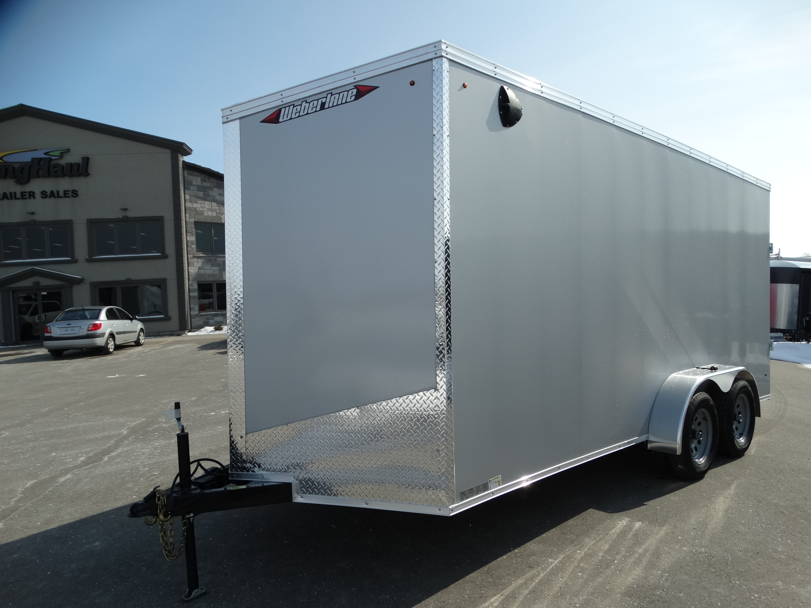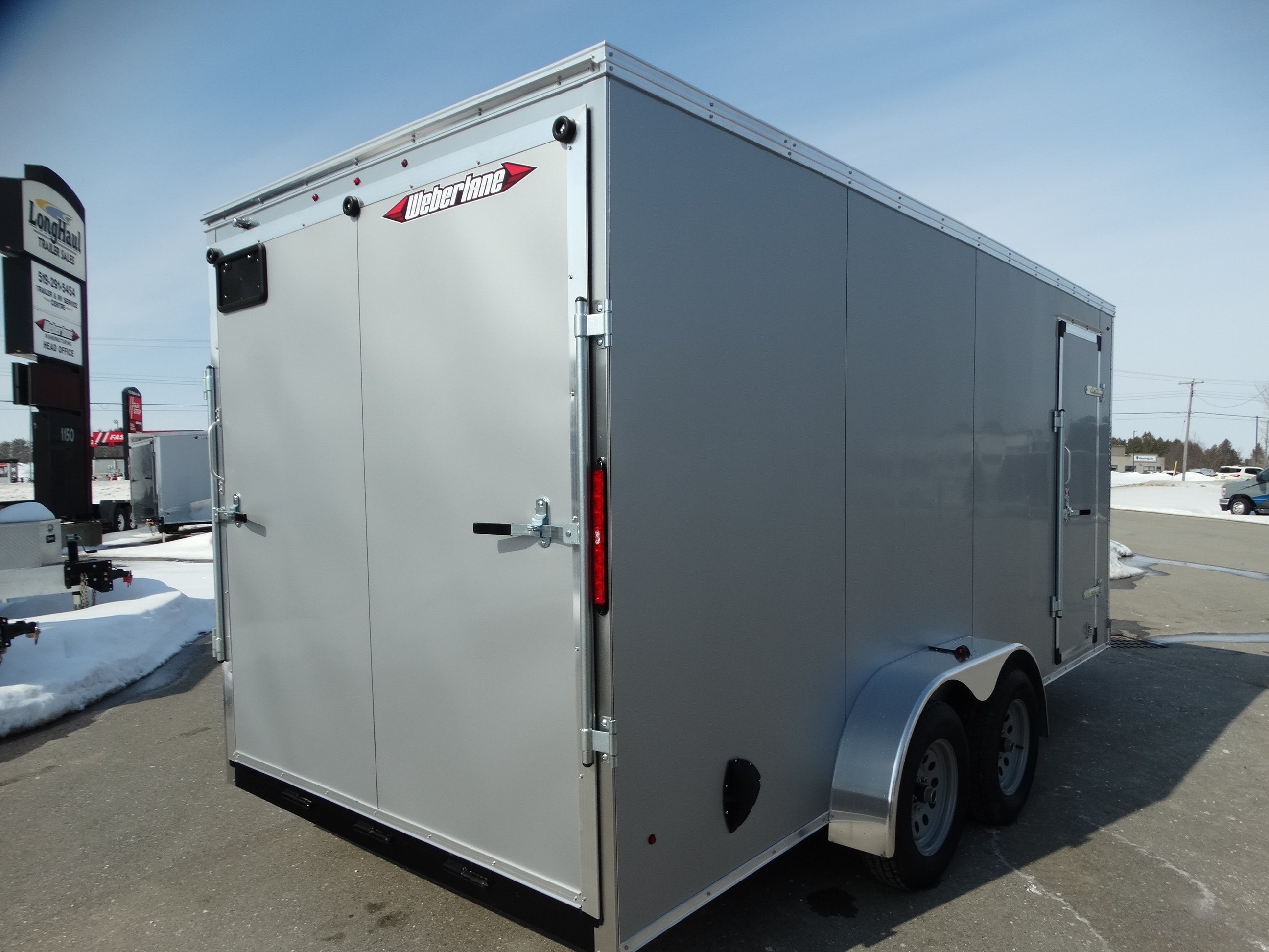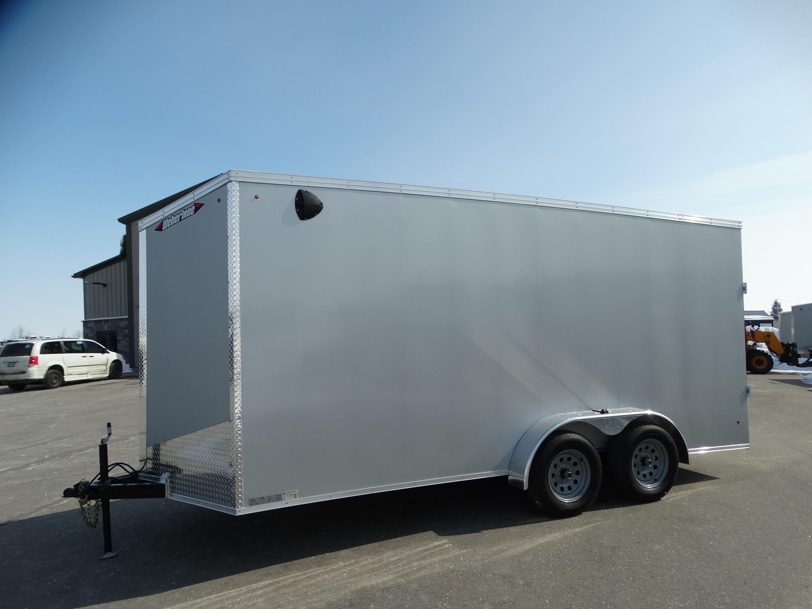 Come check out this 7x16 enclosed trailer! This trailer has tandem 3500 lb axles with electric brakes and a payload of around 4700 lbs. It has an interior height of 84'', rear ramp door, a side door, side vents, an interior light, as well as a front jack and safety chains. Come take a look today!