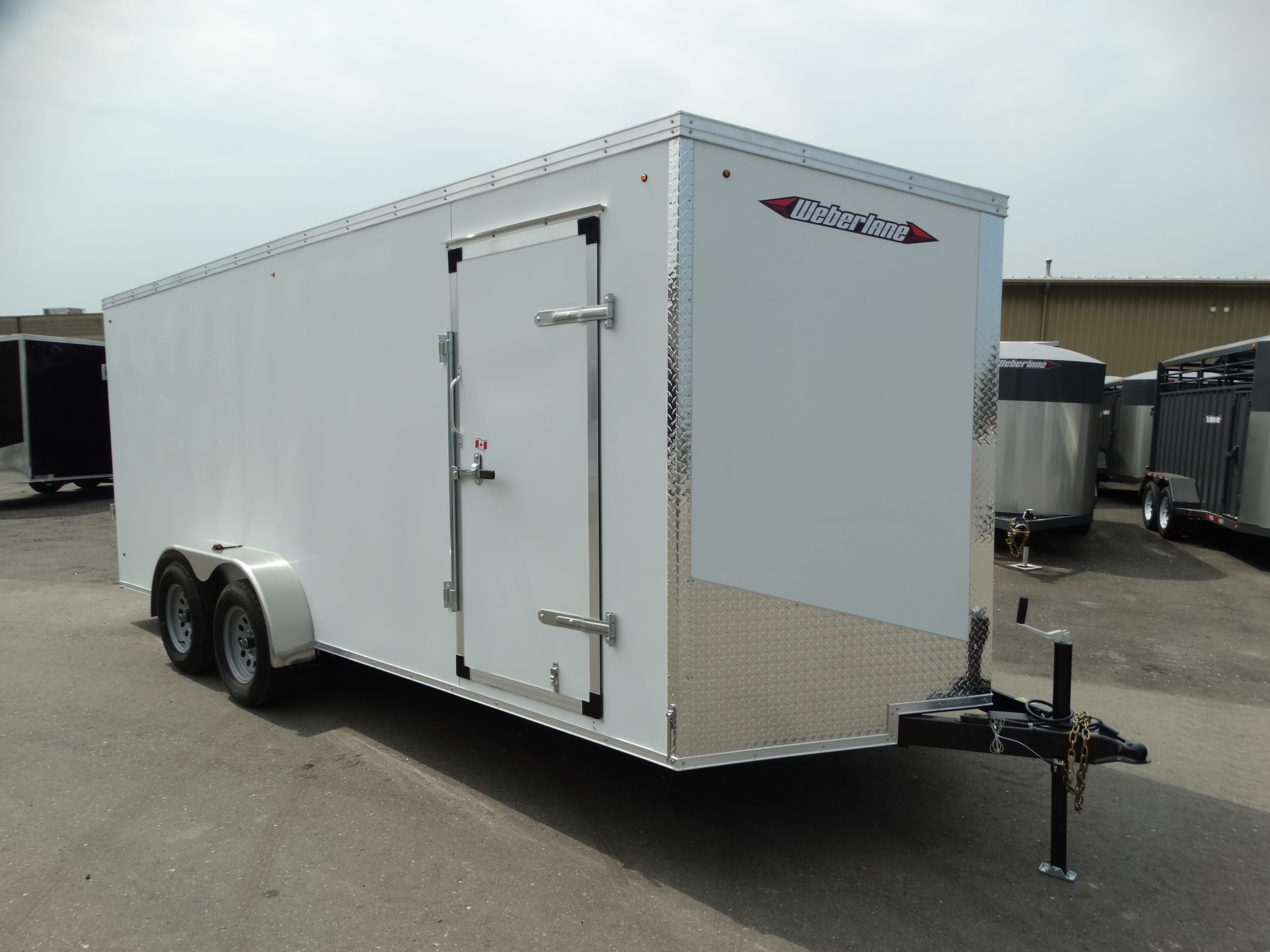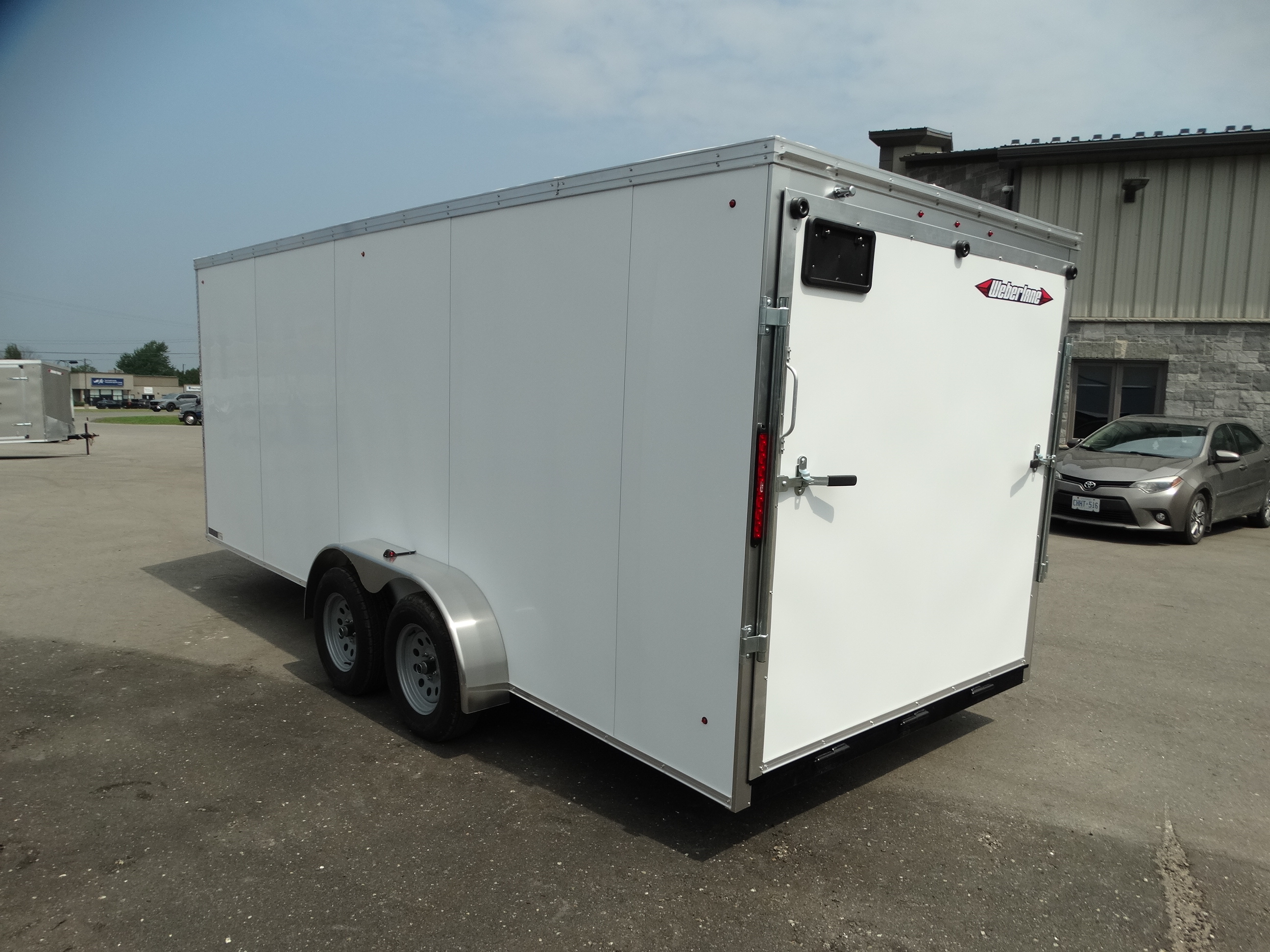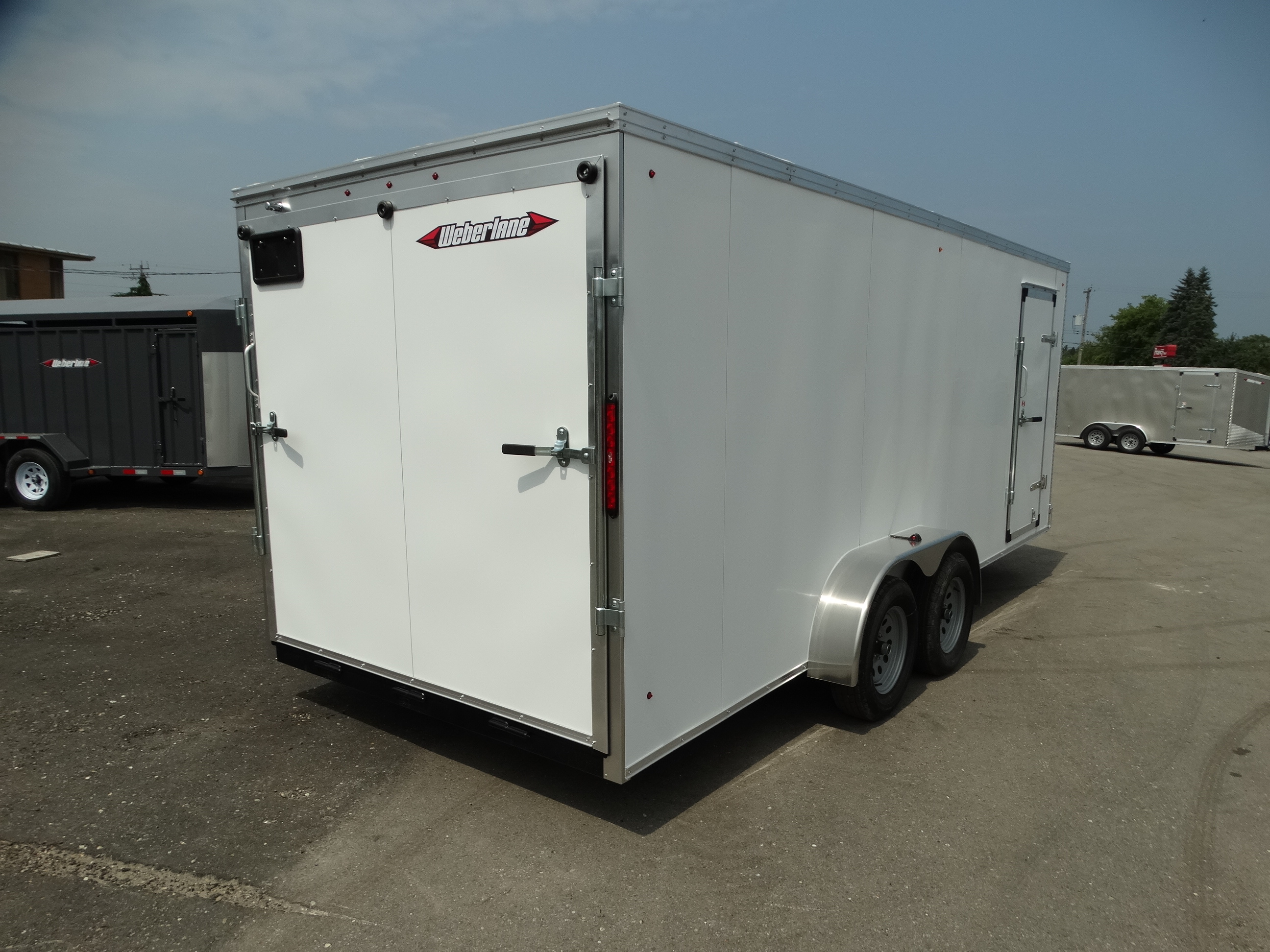Come check out this 7x18 enclosed trailer! These don't stay in stock long! This trailer has tandem 3500 lb axles with electric brakes and a payload of around 4500 lbs. It has an interior height of 78'', rear ramp door, a side door, an interior light, as well as a front jack and safety chains. Come take a look today!
