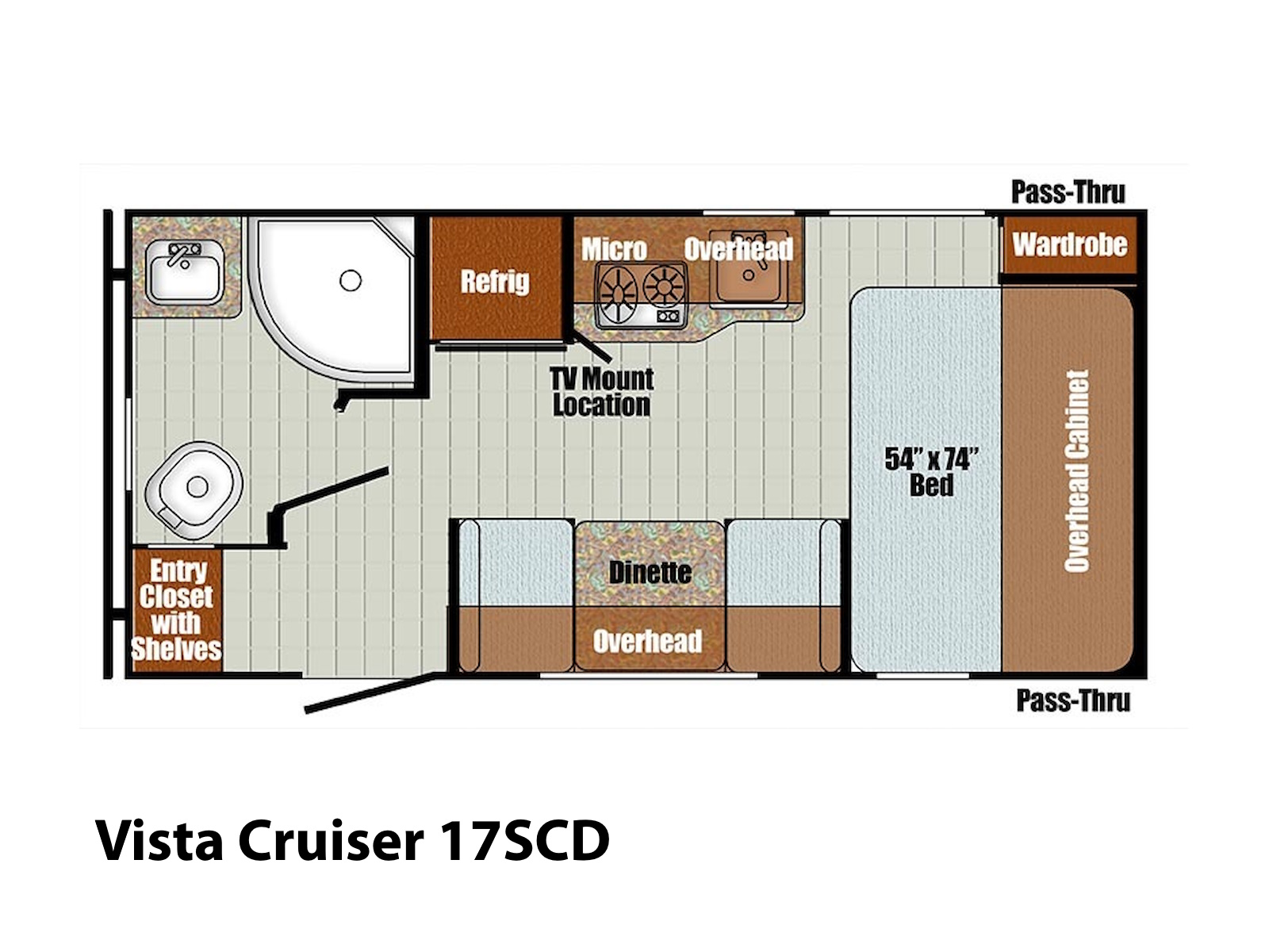 - 54” x 74” Bed w/Mattress (17RWD, 17SCD)