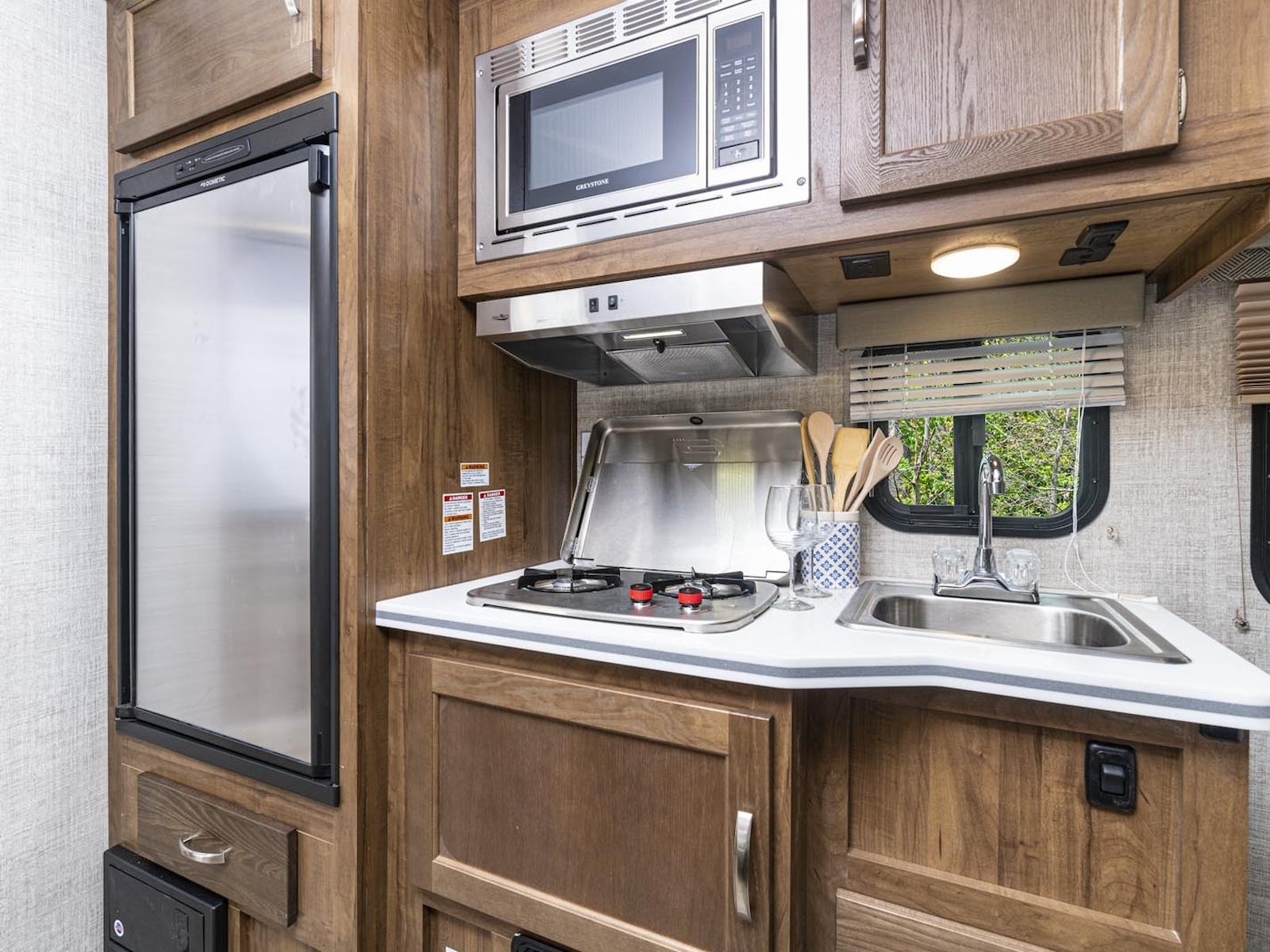 Everything we know about rugged construction, extreme low weight, on-road performance, aerodynamics, and advanced space planning goes into our Vista Cruiser brand of 17- to 23-ft travel trailers.