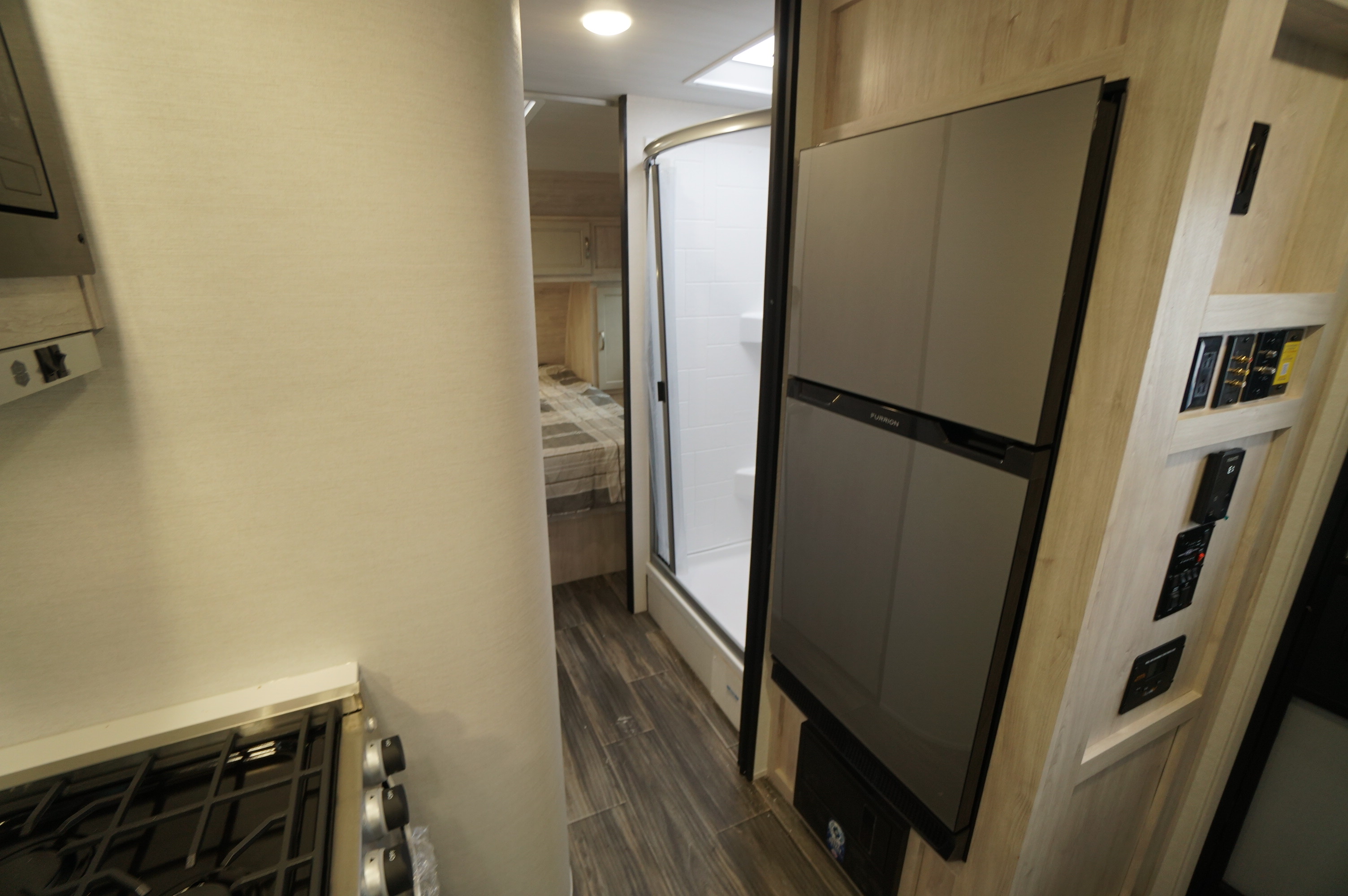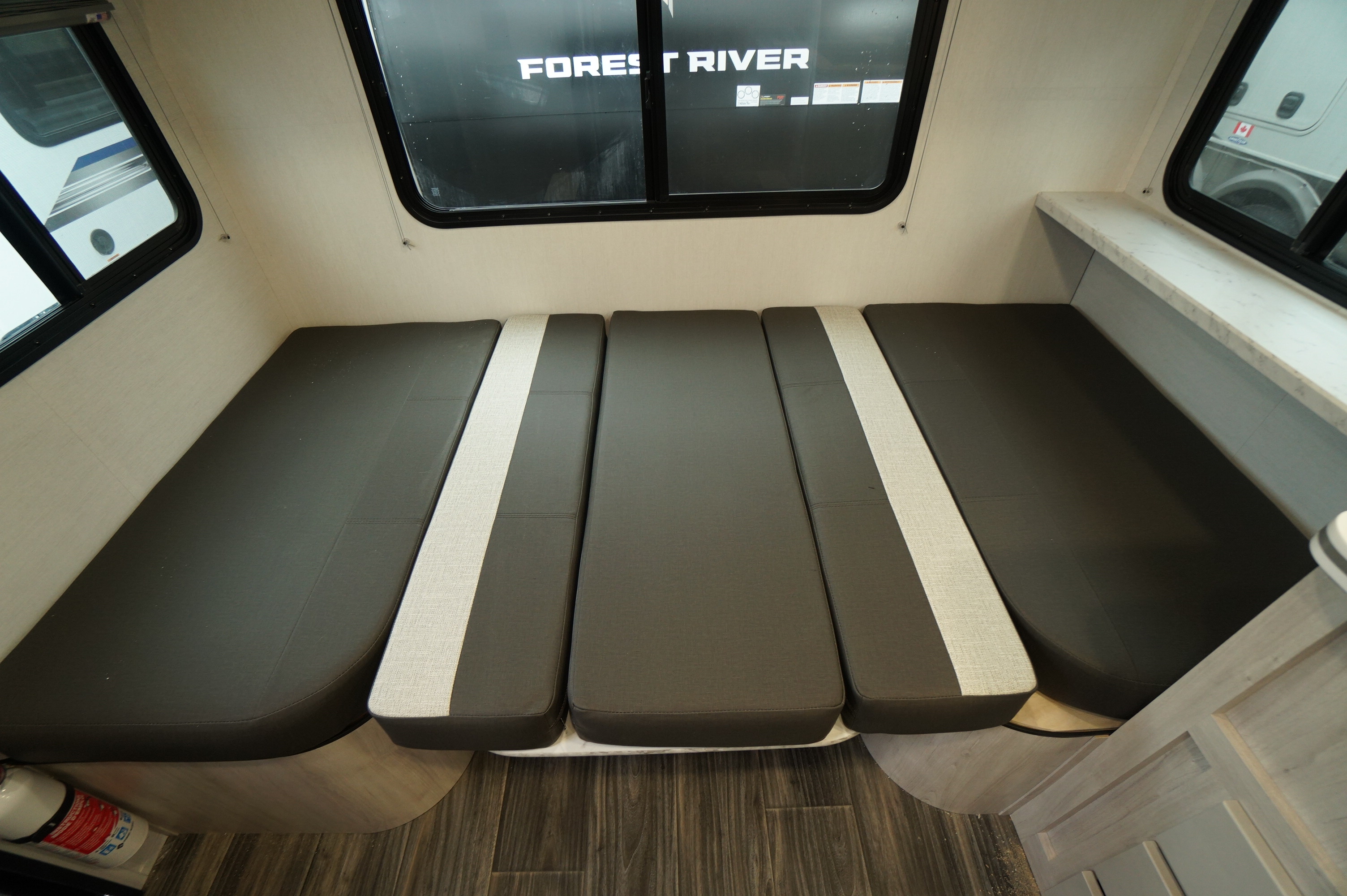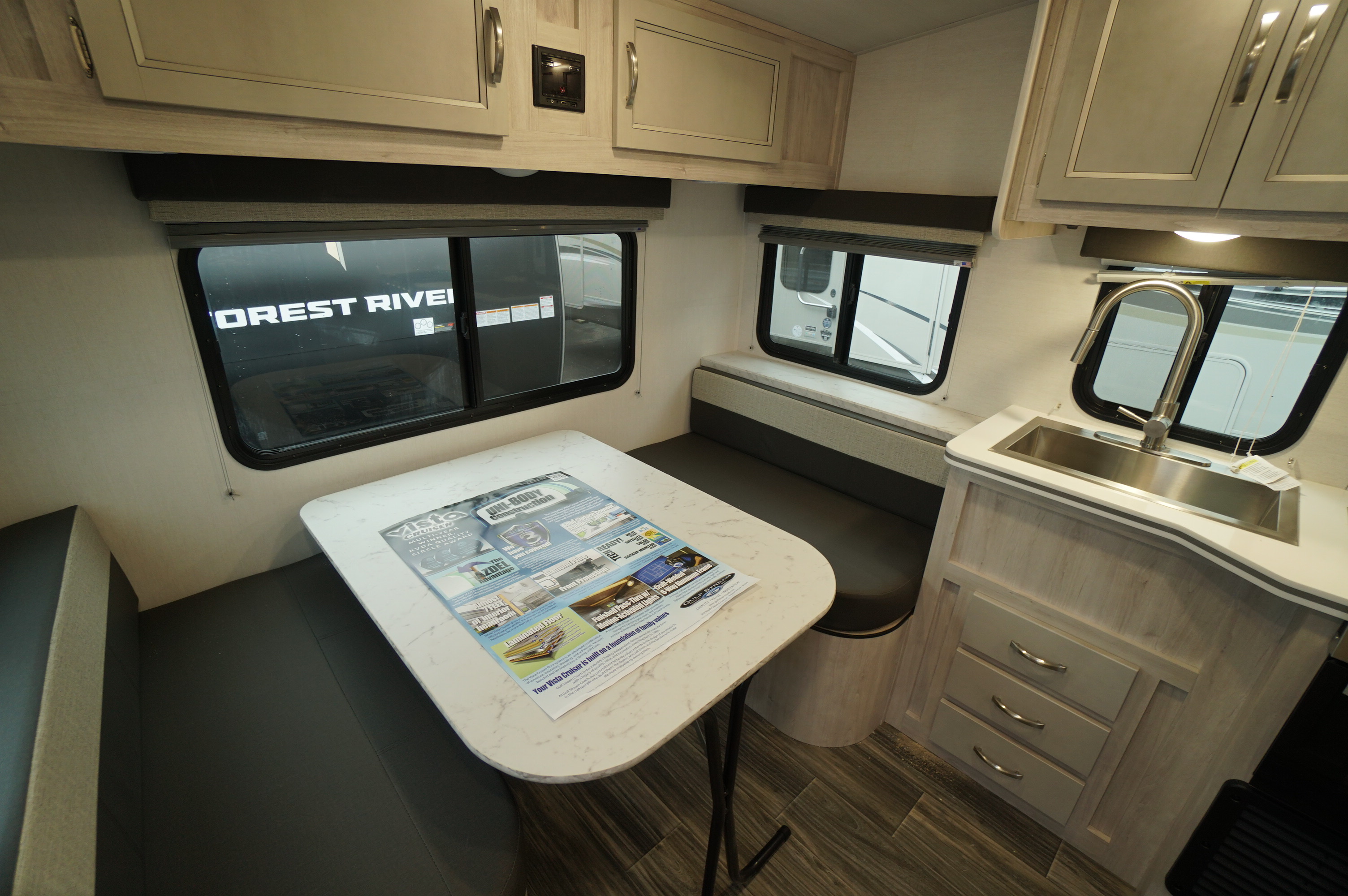 New 2026 Vista Cruiser 19ERD in stock. This is one of the most popular Vista floorplans, at 3270 lbs dryweight with a front 60x74 walk around bed, central washroom and a kitchen with rear 4 person dinette bed with beautiful screened and tinted windows all 3 sides of the dinette. Vista Cruisers are perfect couples trailers for mid sized SUV's. Designed for easy towing, with a lower floor, narrower floorplan at 7'6" for less wind resistance, and a curved one piece fiberglass front, roof and back. 2026 models come with new features like rooftop solar, 12v fridges and tankless water heaters. Aluminum frame RV with vacuum bonded gel coat fiberglass exterior. Azdel wall board, power tongue jack, slam latch baggage doors, power awning, LED awning lights and many more cool features. 19 foot single axle floorplan. Total length including hitch of 23 feet.