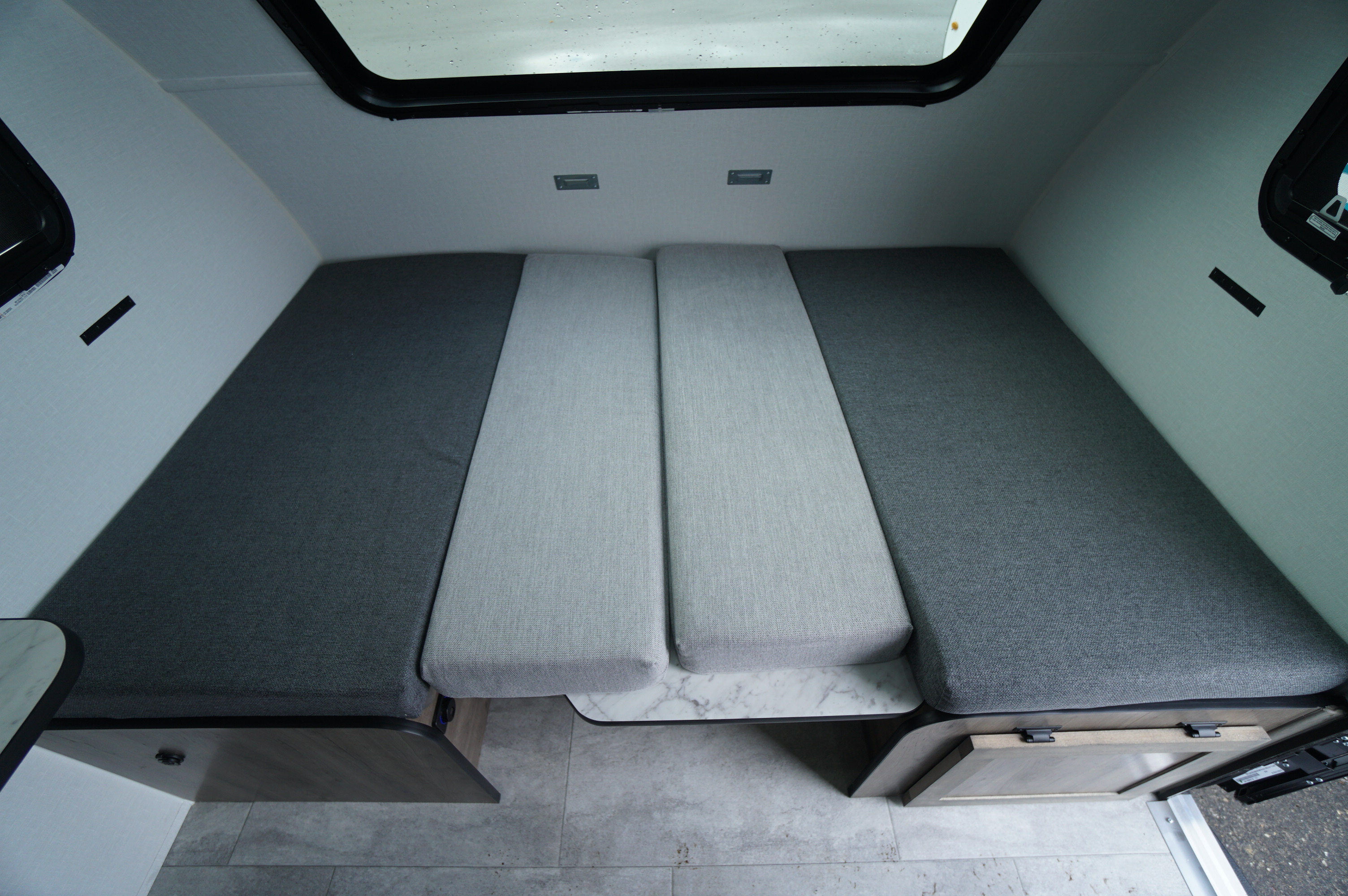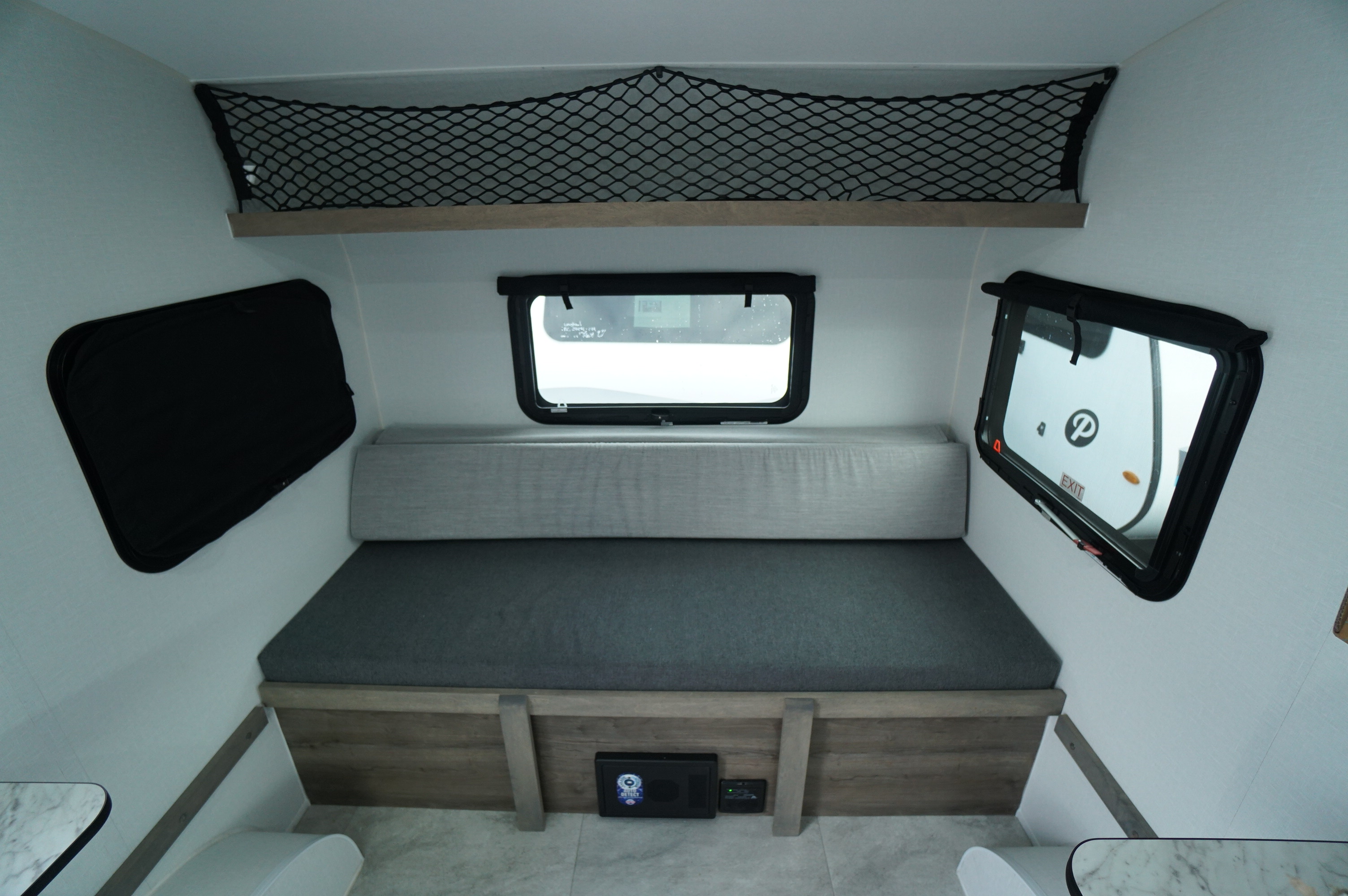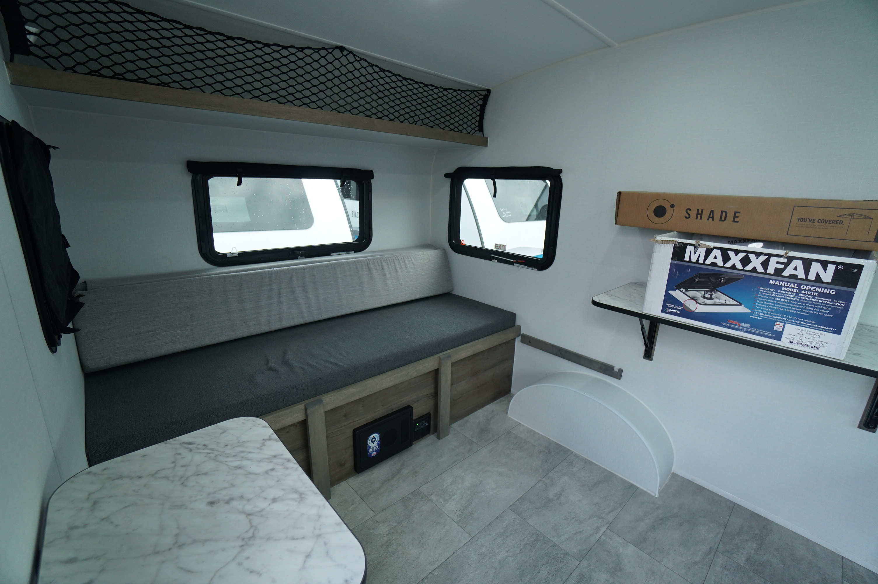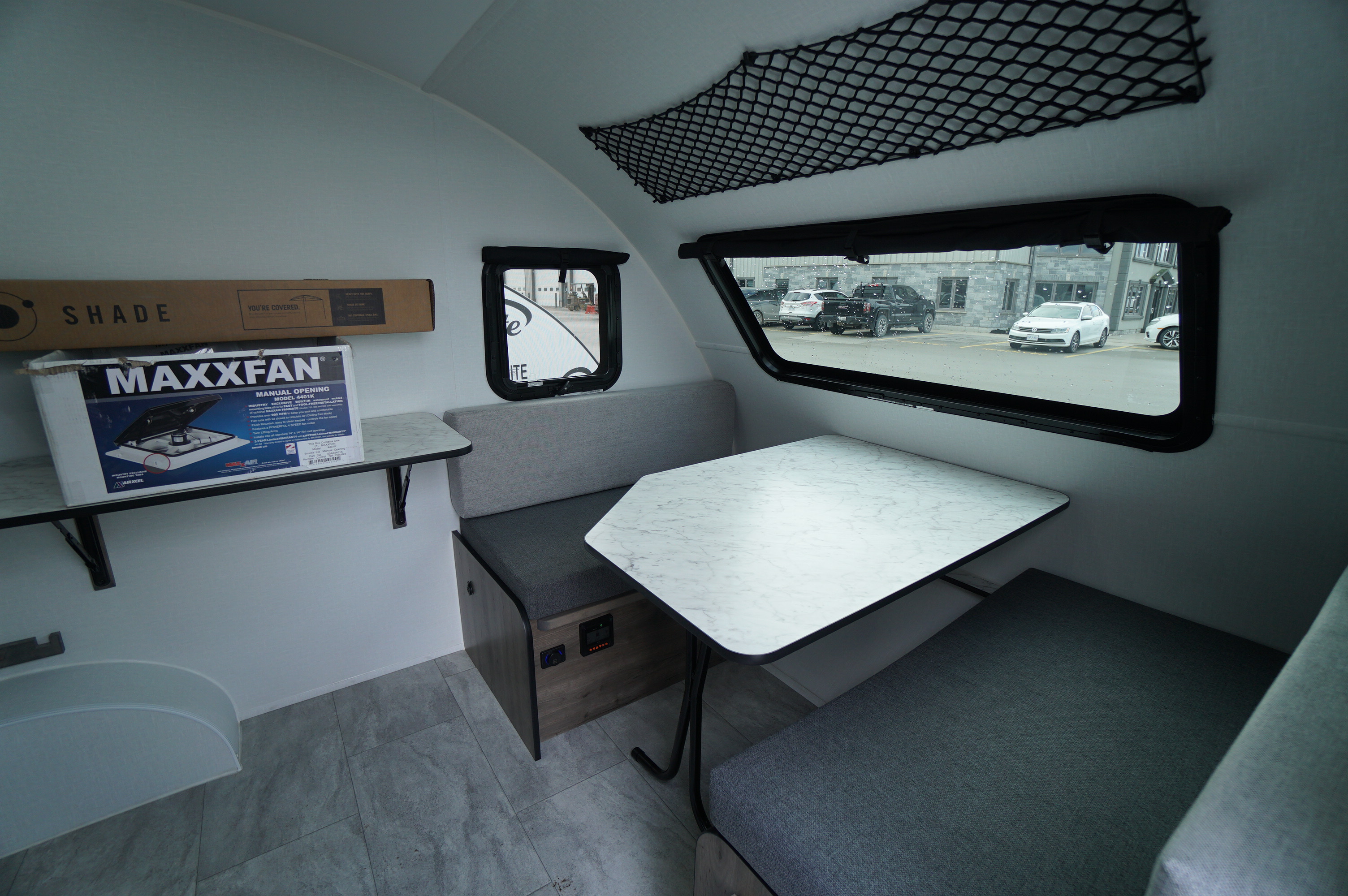 A 4-person trailer weighing only 1050 pounds, and towable by a compact car seems like a dream, but it’s reality! 2 convertable beds mean the entire family has somewhere warm, dry, and comfortable to rest at night: no more having to toss and turn because you pitched a tent in a bad spot! No camping table outdoors in rainy weather. No flooded out tent. No wet canvas to deal with. The sleeping spaces convert to a couch and a 4 person dinette table for daytime use. Roof mounted factory installed solar will keep the onboard battery charged to power your phones and laptop if you don't manage to leave them at home.