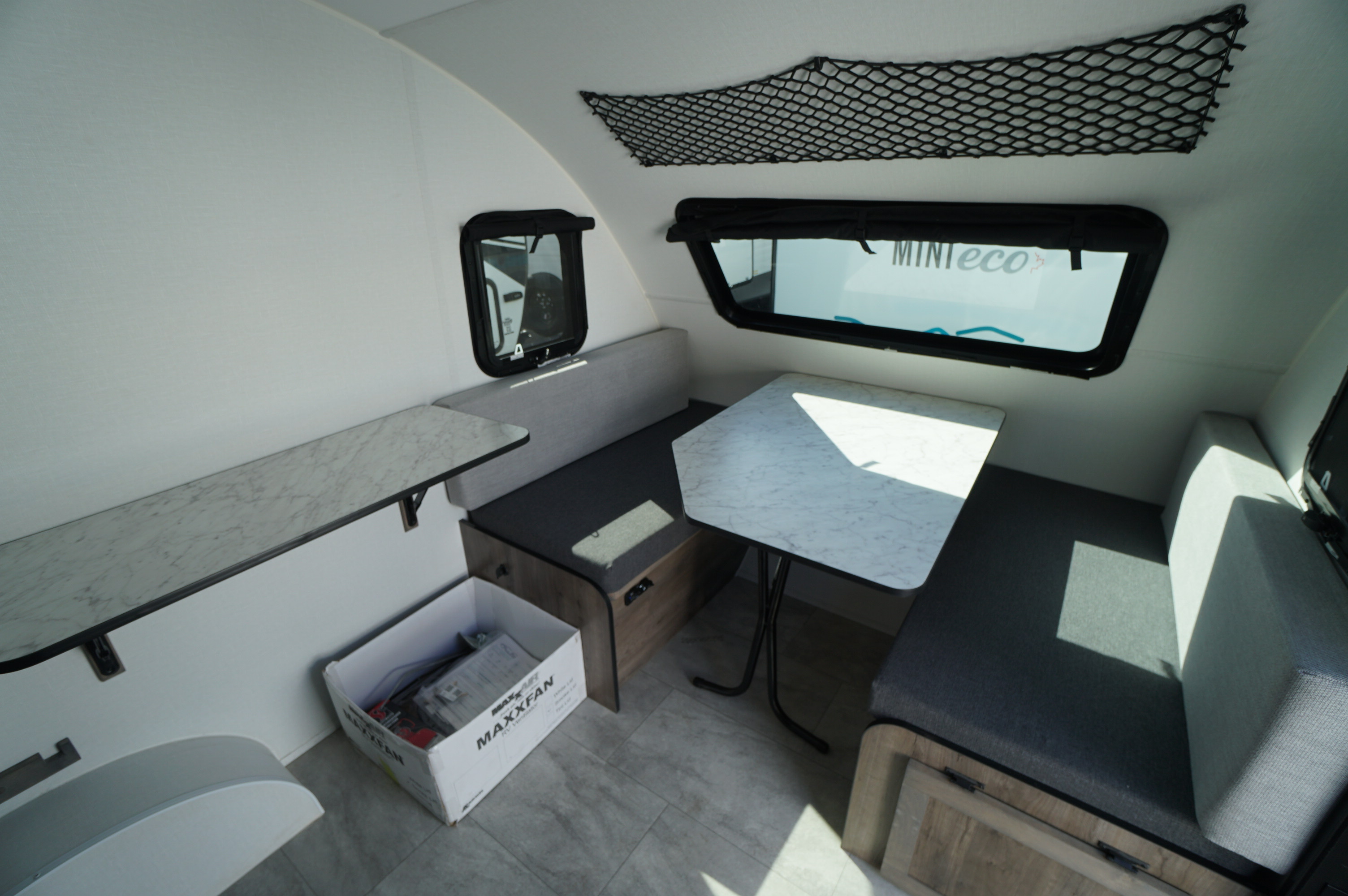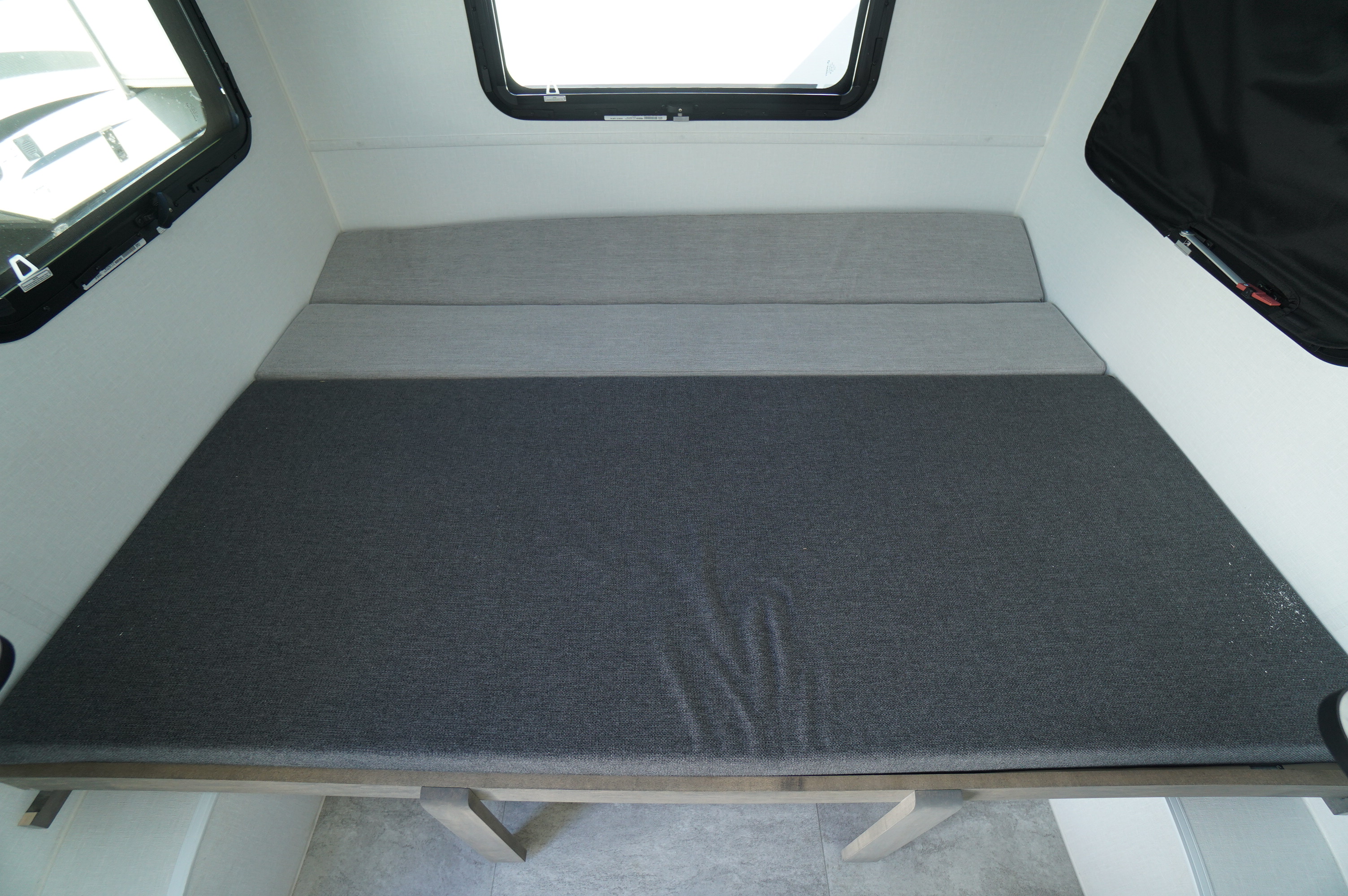 At only 990 lbs dryweight, the Cool sleeps up to 4, with a rear bench bed and a front dinette bed. Insulated fiberglass trailer, with a total of 7 windows! Amazing! 8screen windows to open up, plus the roof top vent, plus the screen door. Comes with 30 amp power cord, power adapter to 15 amp, and a deep cycle marine battery. Its a basic RV trailer, for those customers who are moving out of tent to a snug dry bed on wheels with no assembly required! There's not water or propane to worry about, no appliances either! So you get to keep on using all that cool camping gear you've collected over the years. Just give your bones a break, and do yourself a favour! Get up off the ground and out of the dampness, and into the New Cool!