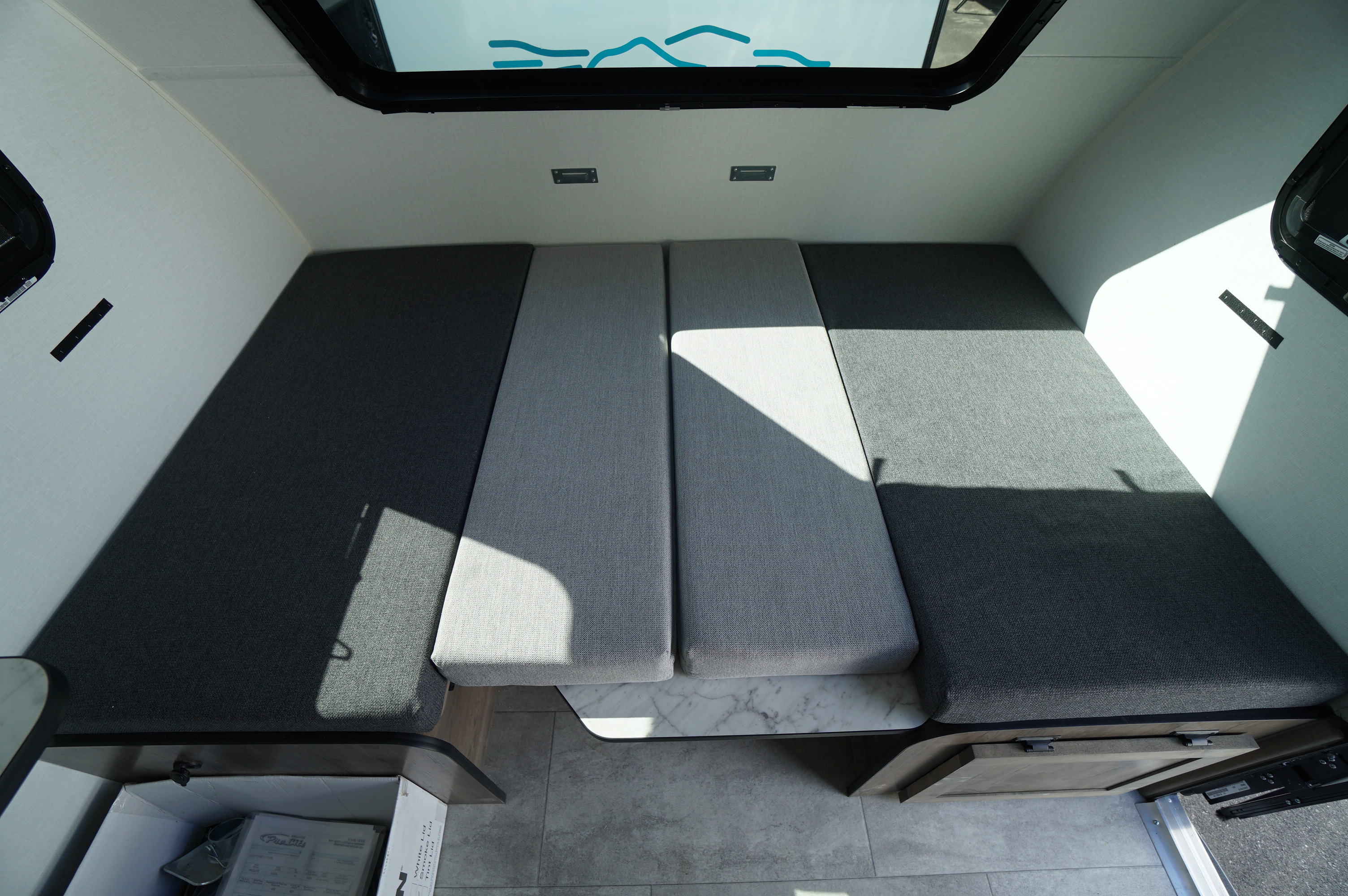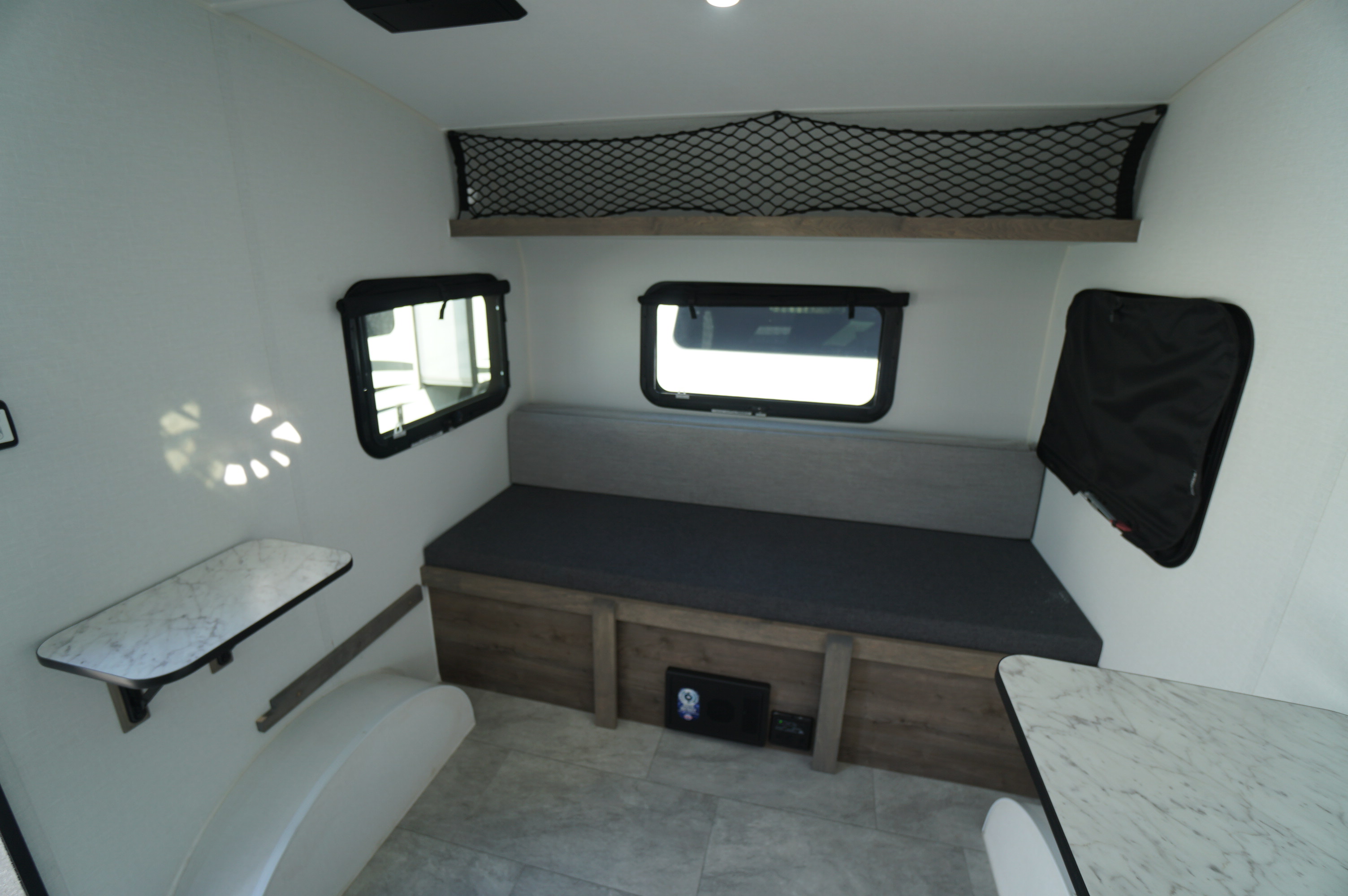 Best of the old but registered like new. A Cool at the transition stage! Standard features for the 2026 Cool is going to drop the front window, awning, entry step and front stabilizer feet, but here we snagged a Cool built right at the dividing point, so you still get those 2025 features, including a bag awning that we have here that we'll install for you, at a 2025 price! You don't get the standard roof top solar that you'll see on the real 2026's, but they do give you a solar plug that if you find the matching panel, you can plug in and be good to go!