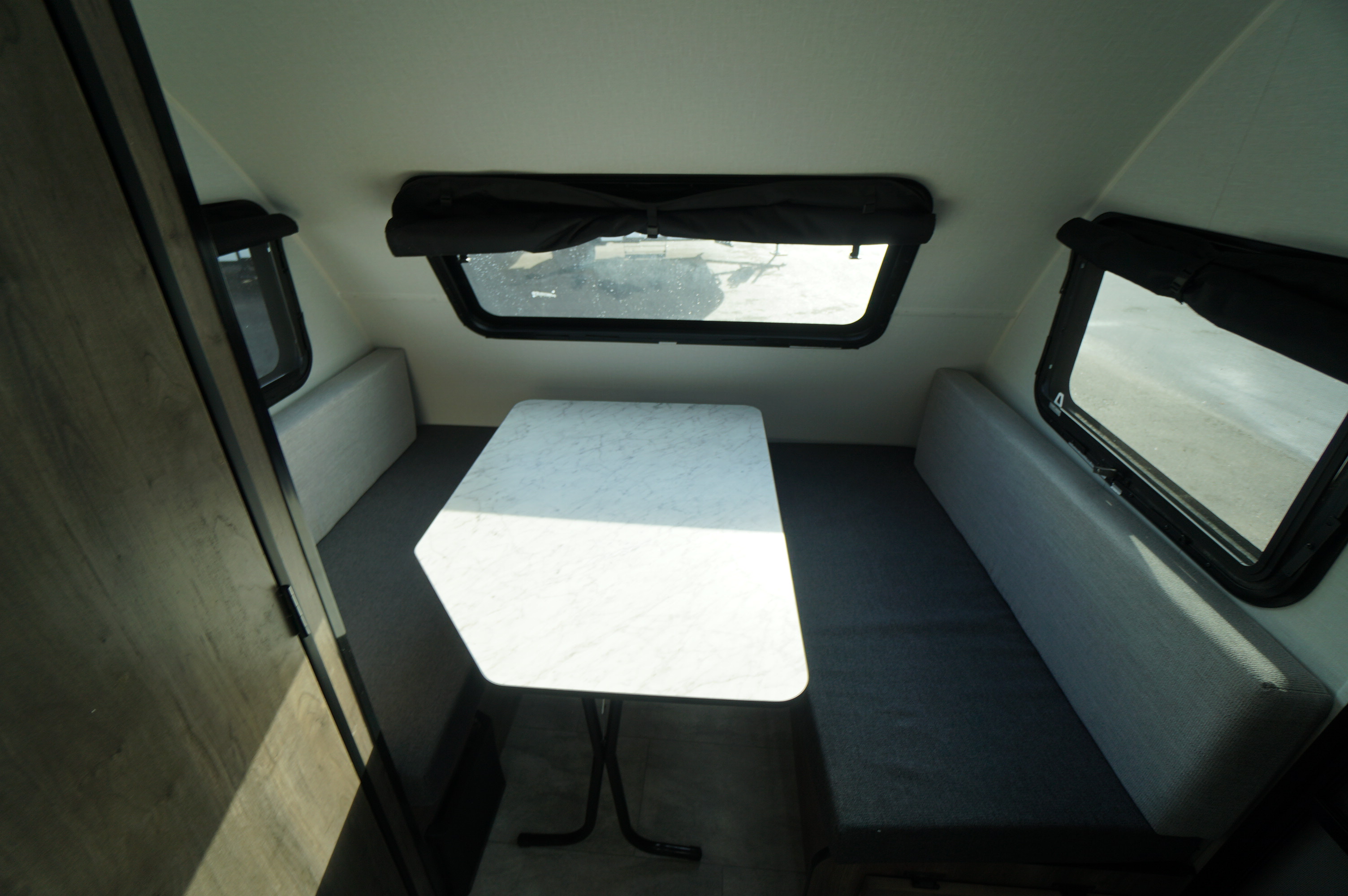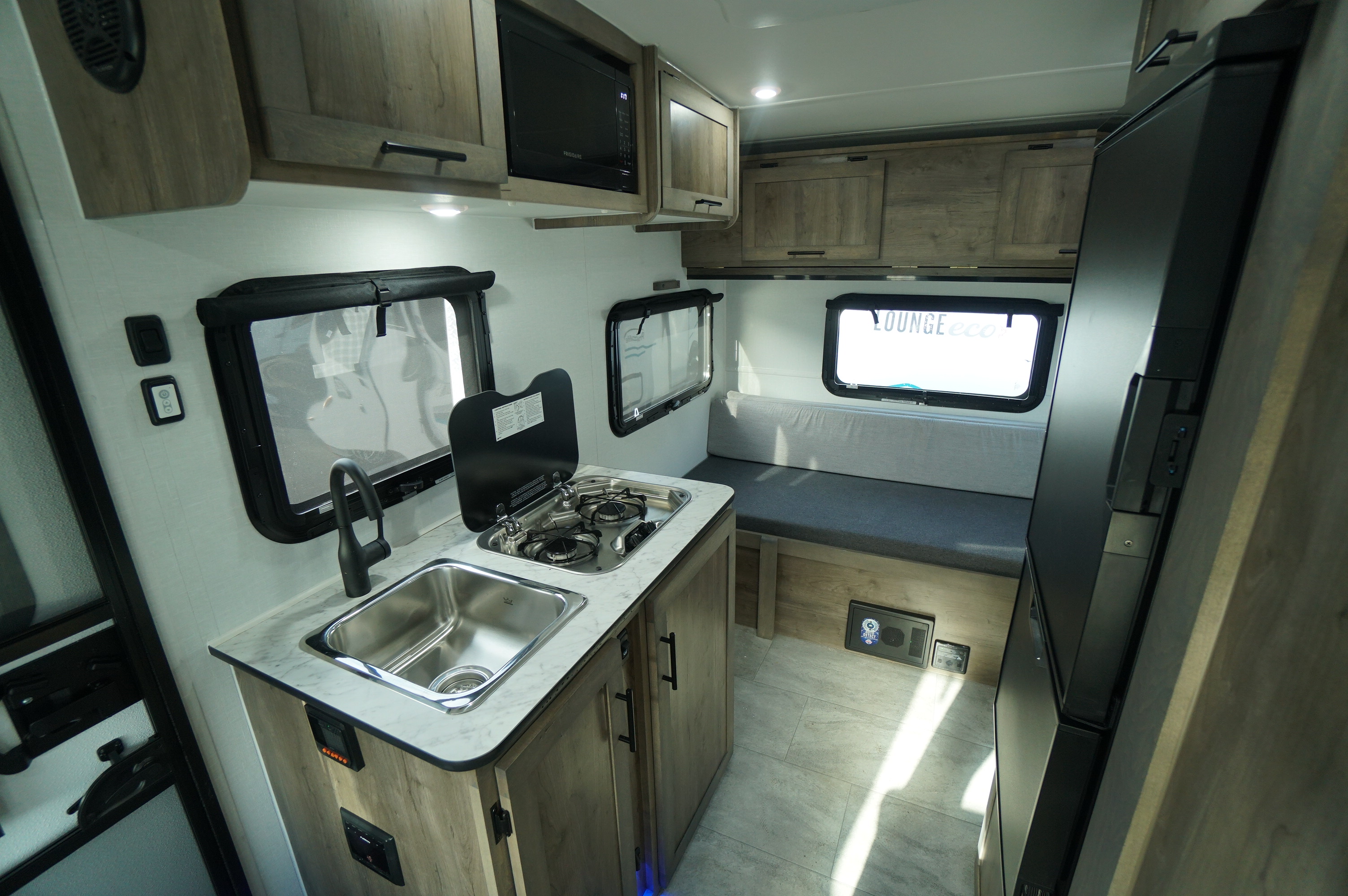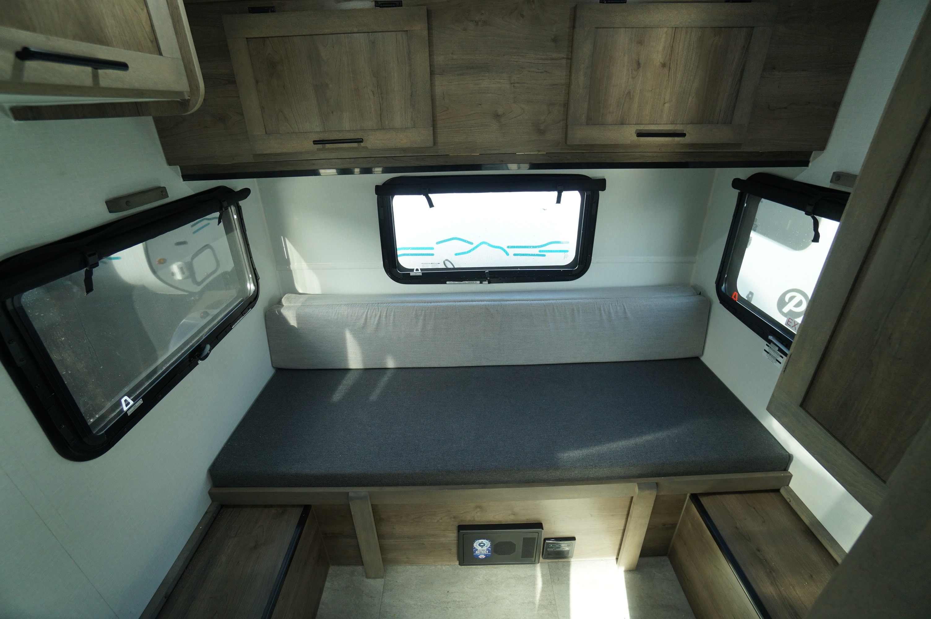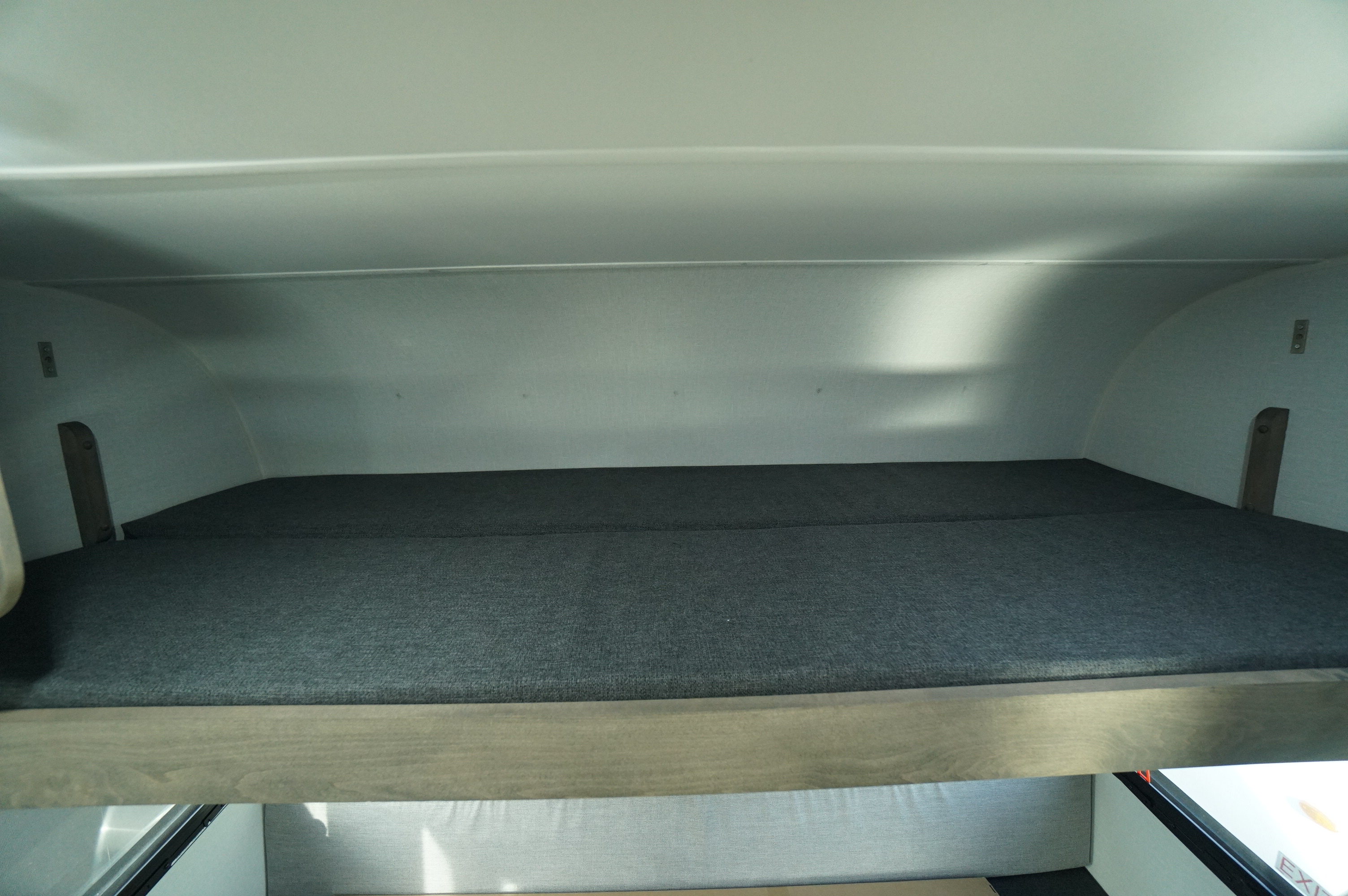 This particular model is in stock with roof top air conditioning and the radio. This 2026 also comes standard with 100W Rooftop solar. With the A/C that bumps the dry weight up to 2040 lbs. But its still an easy tow trailer! A fully equipped camper for 5 people! Prolites are Canadian built RVs, specifically designed for mini vans and mid size SUVS. Built narrow and low for easy towing, yet sufficient road clearance for anywhere a mini van can go, and standing height inside. Fiberglass travel trailer, with one piece front, top and back. Easy crank out hard shell awning. Roof top solar, 12v fridge, rear mounted spare tire, outdoor shower, propane furnace, air conditioning, and much more. Lots of screen windows, and a screen door. Sleeping for 5 including the convertible top cabinet bunk bed.