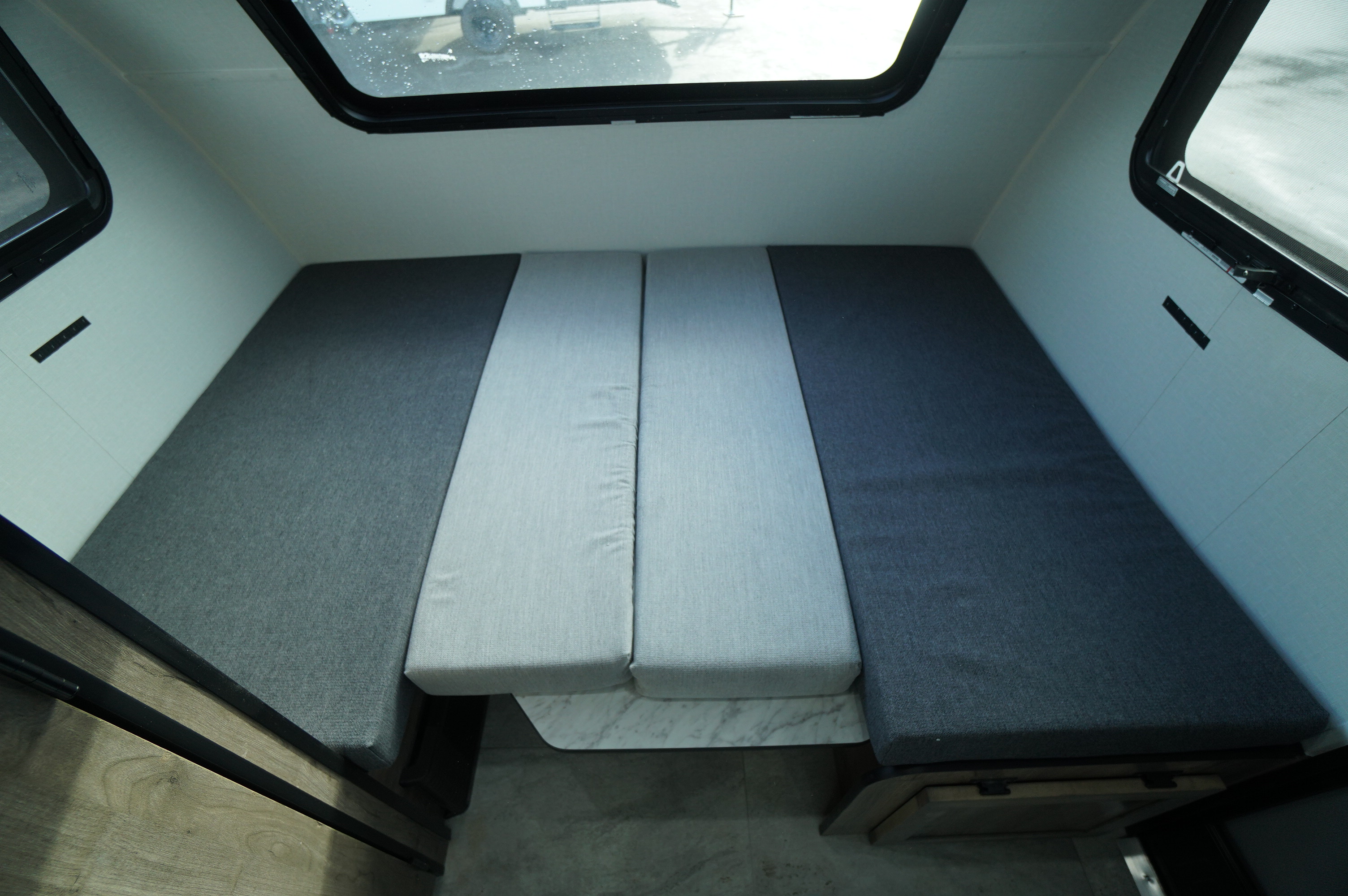 The Evasion has 2 convertible adult-size beds. All the amenities a family needs for a comfortable trip are there too, including a 2 door 12V fridge, stove, toilet, shower, and heating!