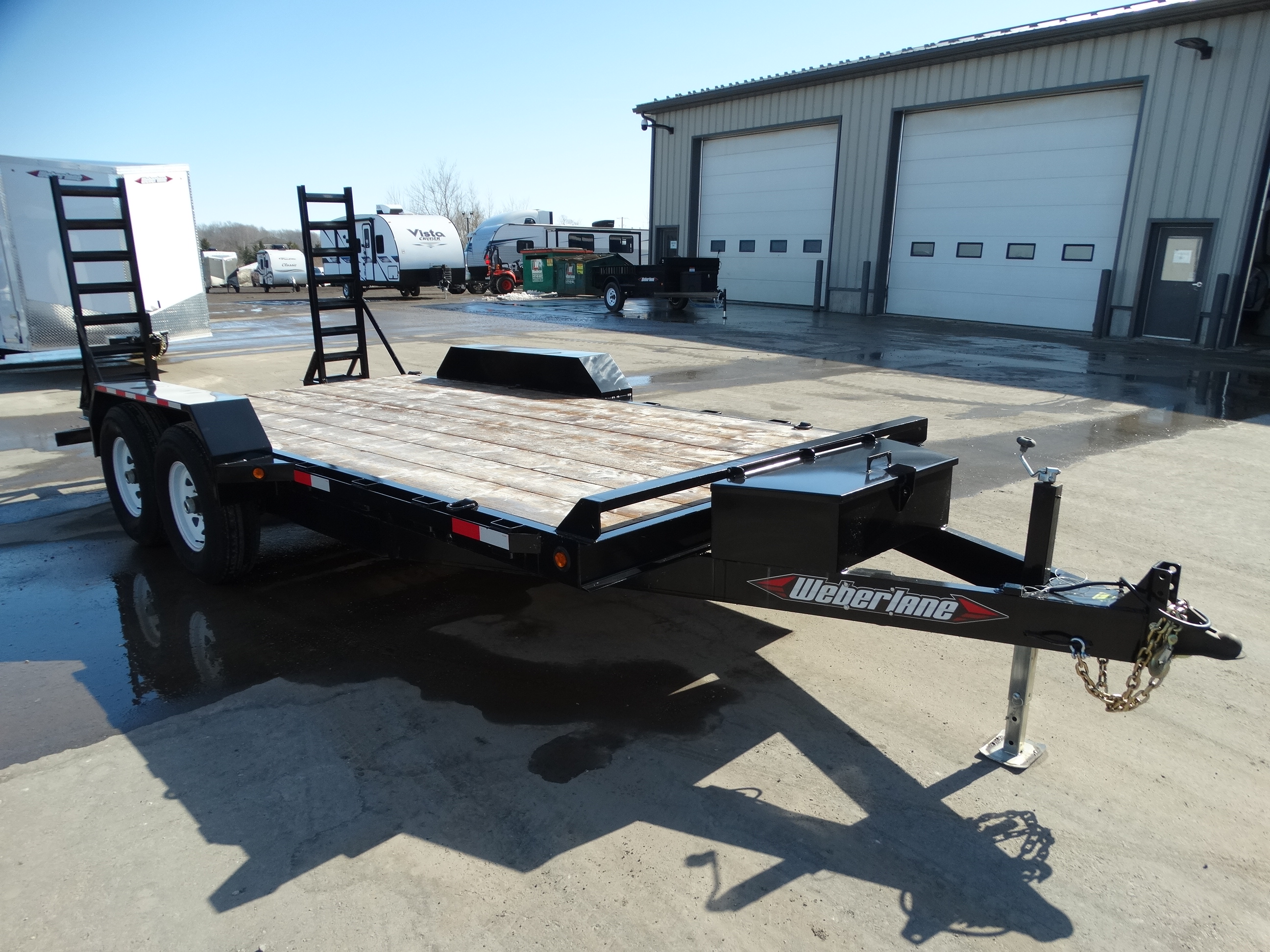 Come take a look at this 16' equipment trailer. This trailer has tandem 7000 lb axles with electric brakes and a payload of over 11,000 lbs. It has a rear 2' dovetail, rear stabilizers, stake pockets, front jack and safety chains. Come check it out today!