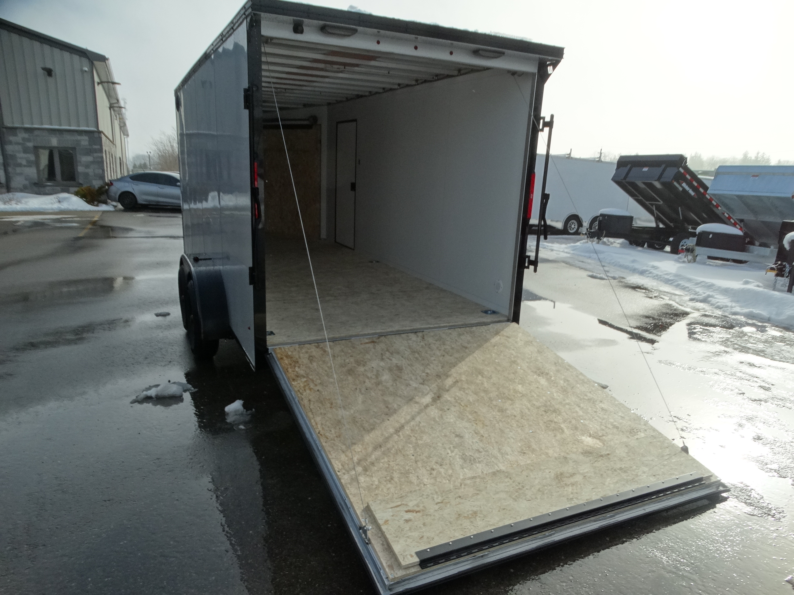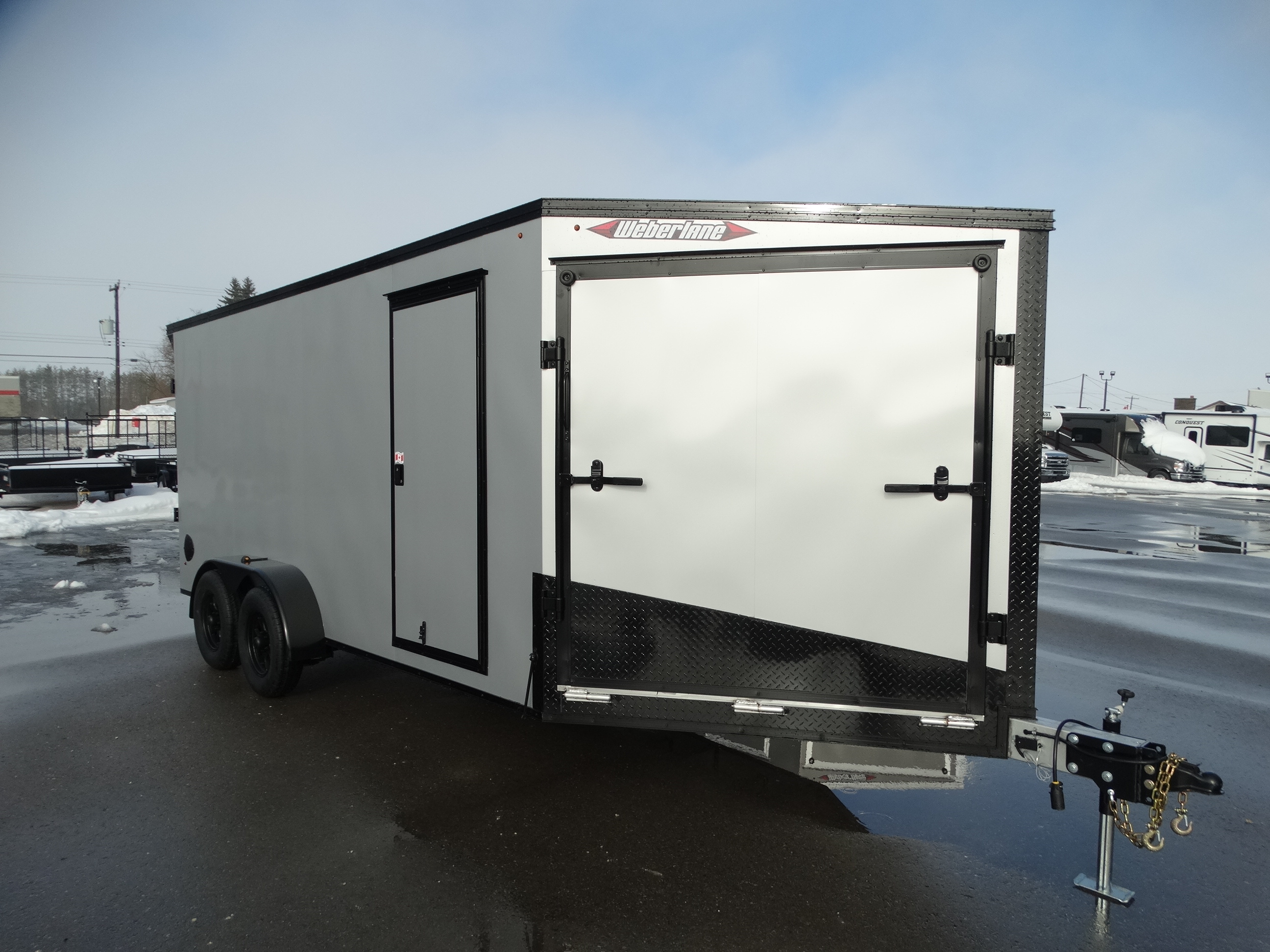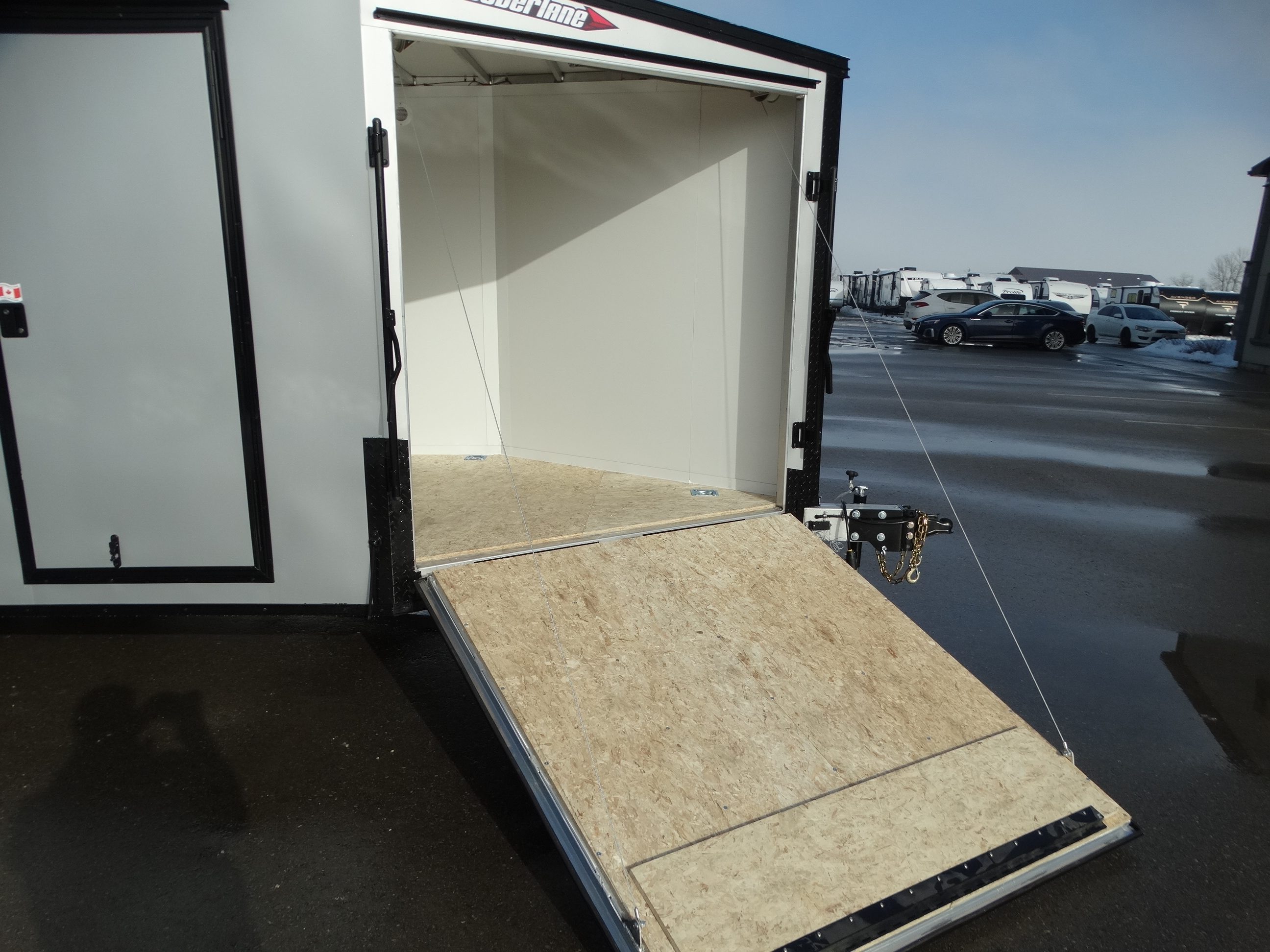 Come check out this 7x21 aluminium sled trailer! This trailer has tandem 3500 lb axles with electric brakes and a payload of over 4500 lbs. It comes with aluminium rims, white plastic interior lining, a rear ramp door as well as a front ramp door, 78'' interior height and d-rings. It also has a rear spoiler with integrated lights as well as the blackout trim package for a sharper look. Come see it today!
