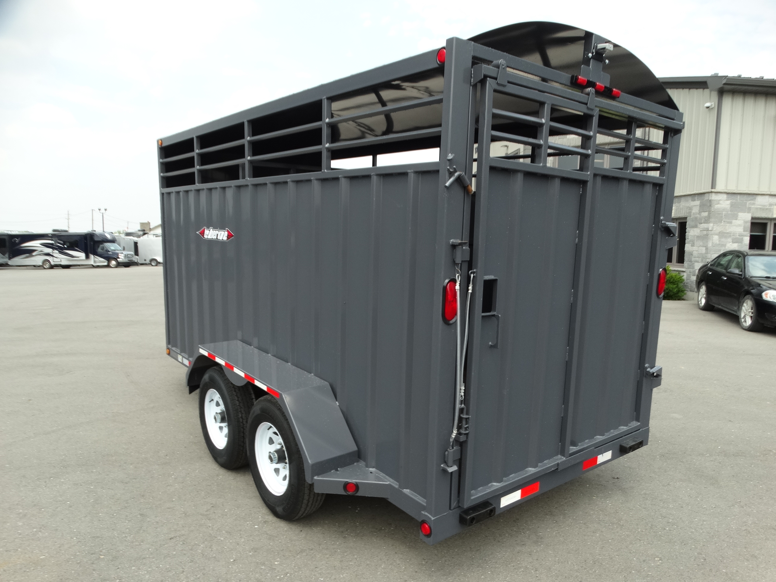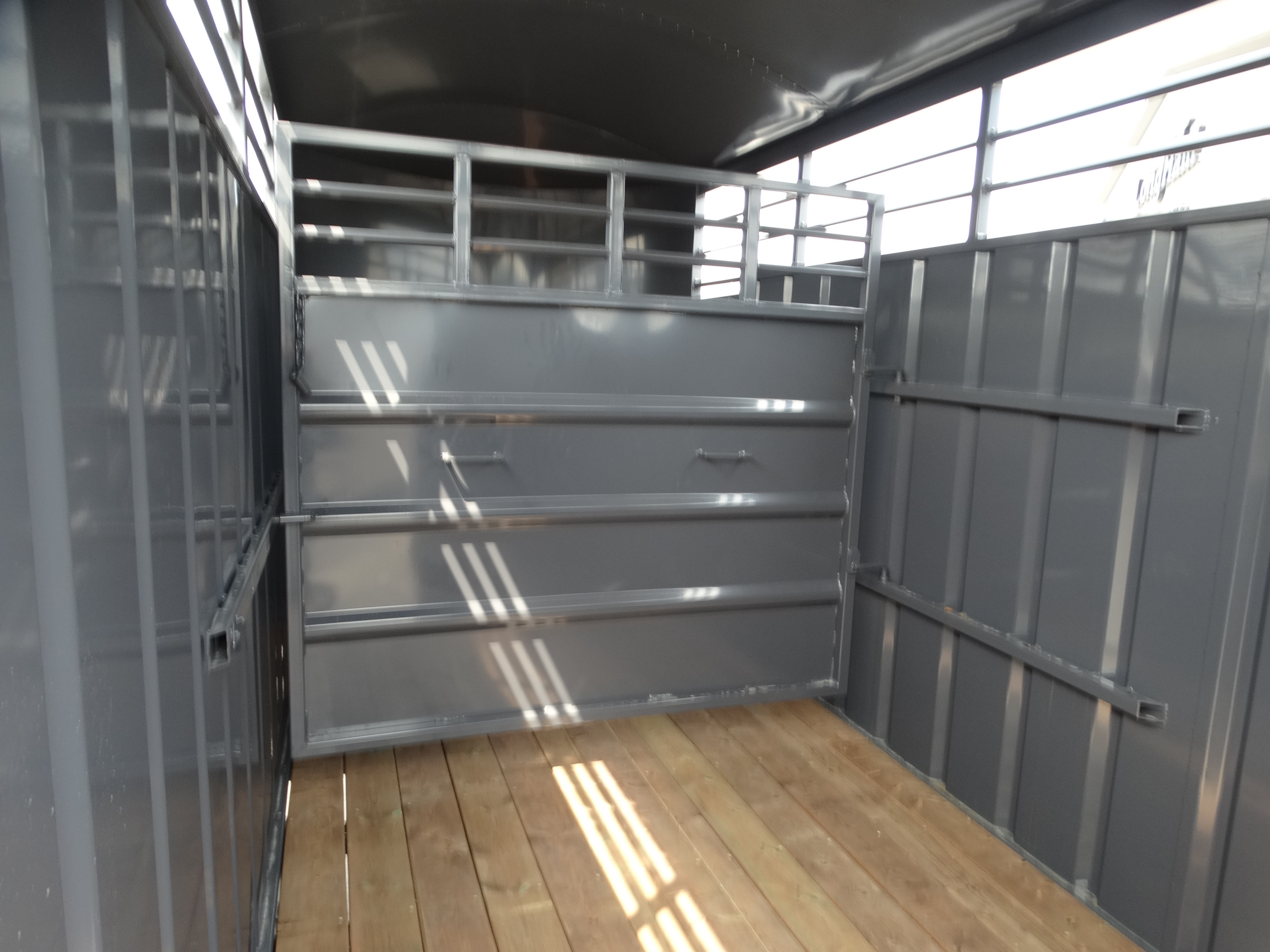 Come take a look at this 15' livestock trailer! This trailer has tandem 5200 lb axles with electric brakes and a payload of around 6900 lbs. It has 12'' extra height for hauling horses, a rear sliding/swing gate, side door, front stone guard, mid-gate, jack and safety chains. Come check it out today!
