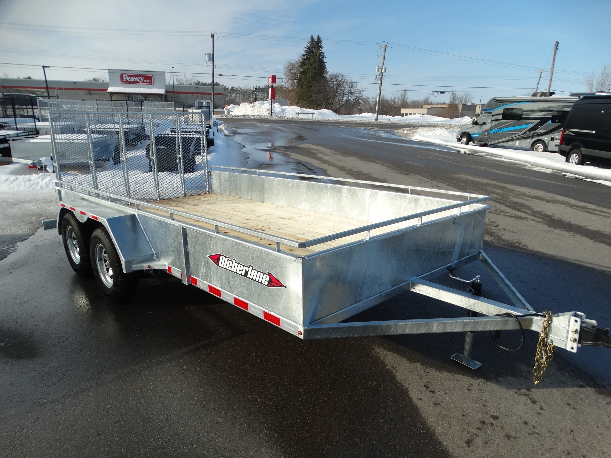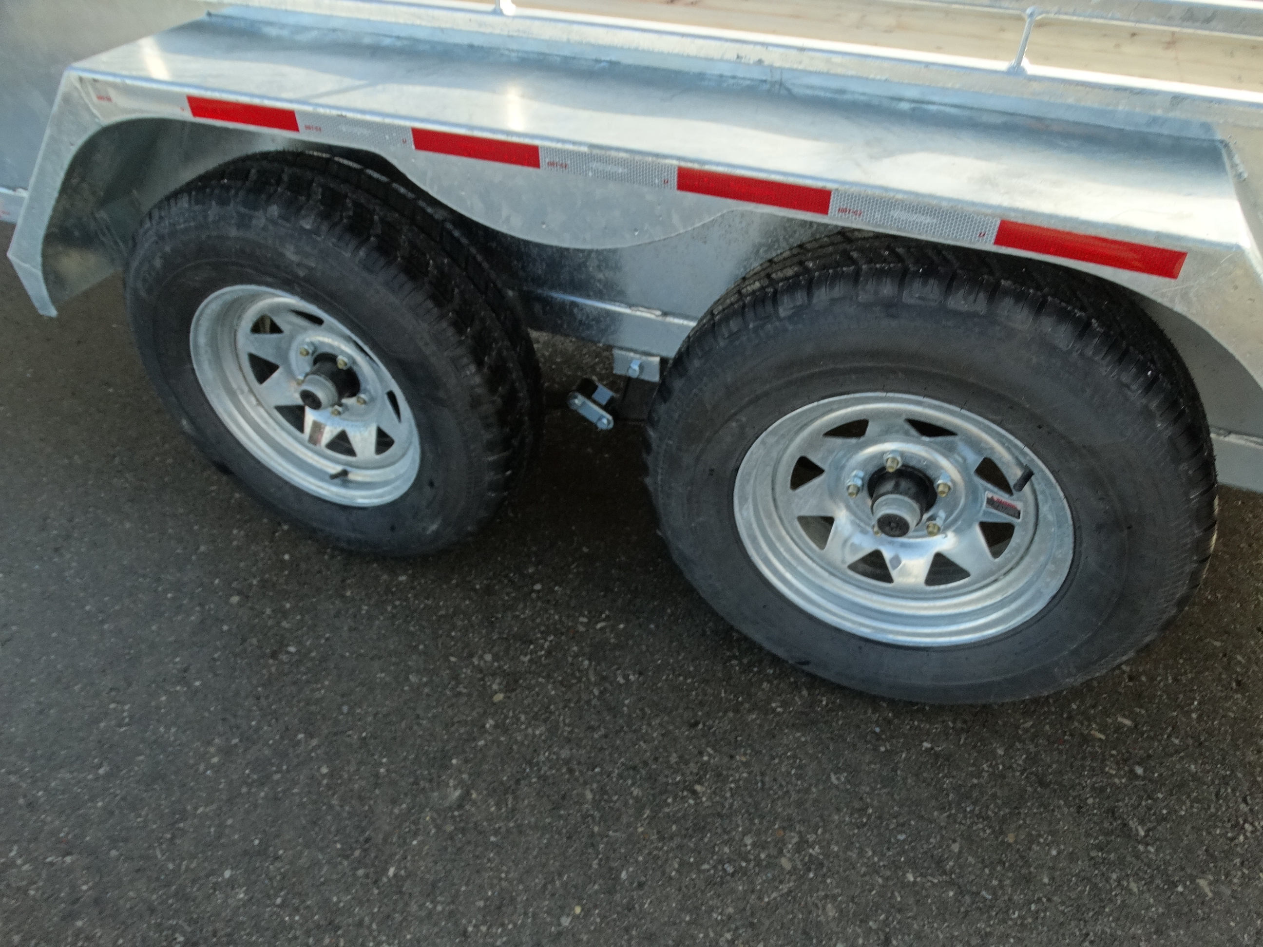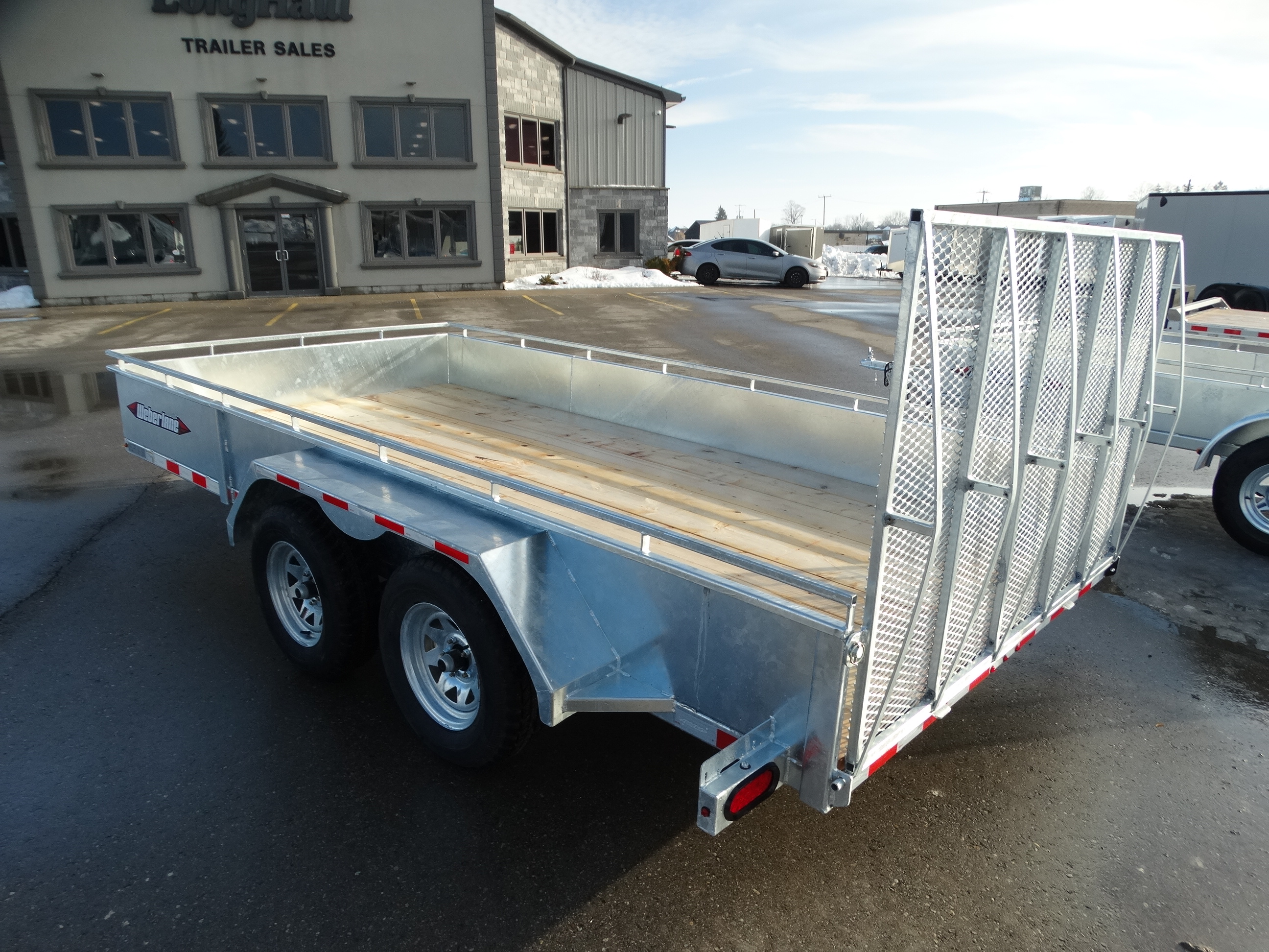 Come take a look at this galvanized 82'' x 14 landscape trailer. This trailer has tandem 3500 lb axles with electric brakes and a payload of around 4500 lbs. It has a rear ramp gate, galvanized rims, LED lights, front jack and safety chains. Check it out today!